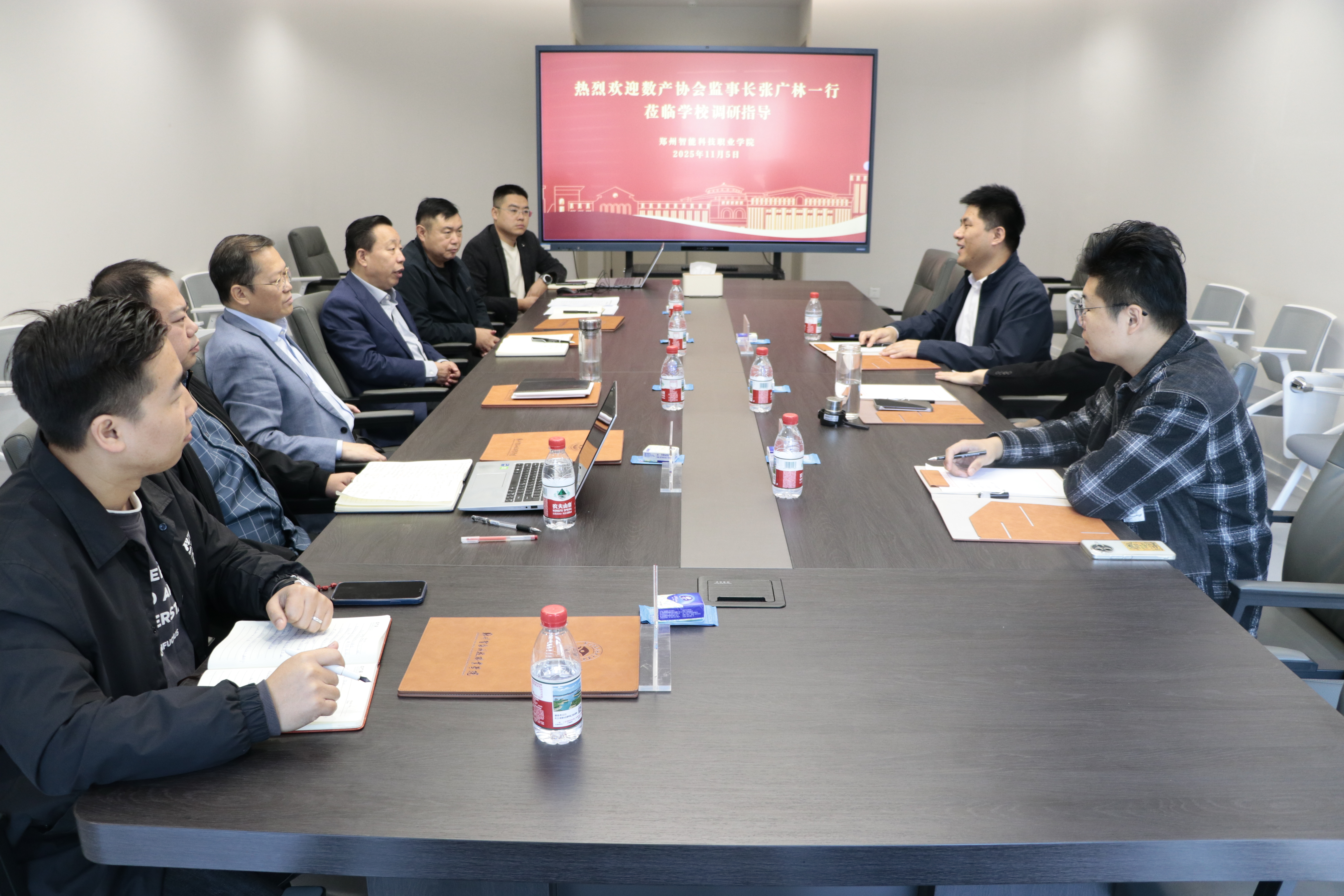 河南省数字经济产业协会监事长张广林,濮阳市米琦通信设备有限公司总经理袁道远、濮阳米琦产教融合项目总监雷朝阳一行莅临学校,校企合作与就业处处长周官志、人工智能学院