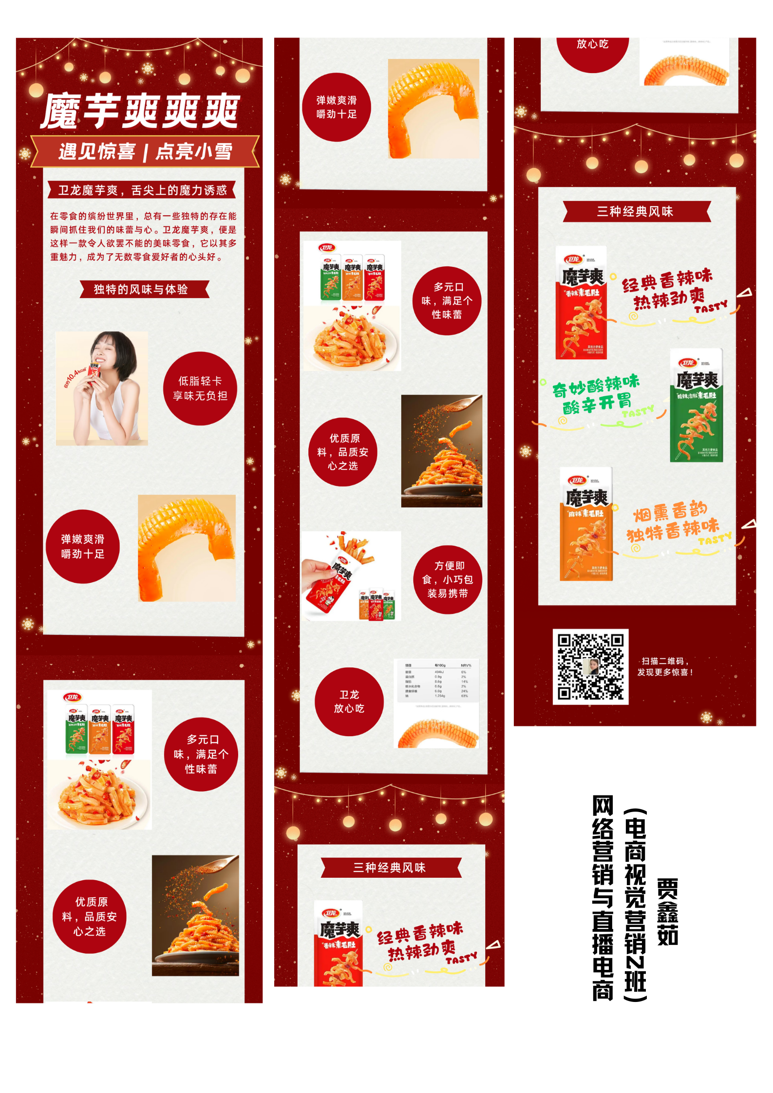 本次系列优秀作品展出,不仅是对学生们本学期学习成果的一次检阅,更是对他们创意与实践能力的展示。每幅作品都凝聚着学生们的心血与创意,展现出了他们在品牌产品信息提炼、文图排版等方面的潜能。希望这次展出能够激励更多同学积极参与课程实践,相互学习,共同进步,为未来的直播电商领域注入更多新鲜血液与创新活力。