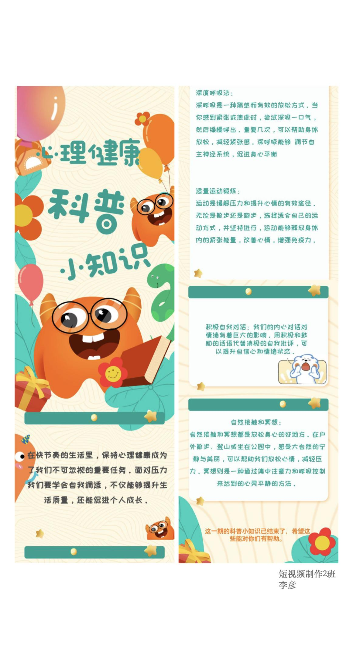 本次线上展览集中展示了传媒学院学子们围绕六大主题——节日节气、校园、文化、预防倡导、科普、健康养生所创作的精彩长图推送设计。 从独特视角出发,学生们巧妙融合创意与技艺,用一幅幅生动鲜活的长图,讲述着节日的温馨、校园的故事、预防的重要、科普的趣味、文化的深邃、养生的智慧。这些作品不仅展现了学生们扎实的专业技能,更体现了他们对社会生活的敏锐洞察和深刻思考。 让我们一同走进这场视觉盛宴,感受创意的火花,见证传媒新星的璀璨绽放!在这里,每一幅作品都是一个故事,每一段文案都蕴含深意,期待您的品鉴与共鸣。 五、科普主题 指导教师:孔乔星 审核:石冰清 编辑:杨安易 排版:李思莹