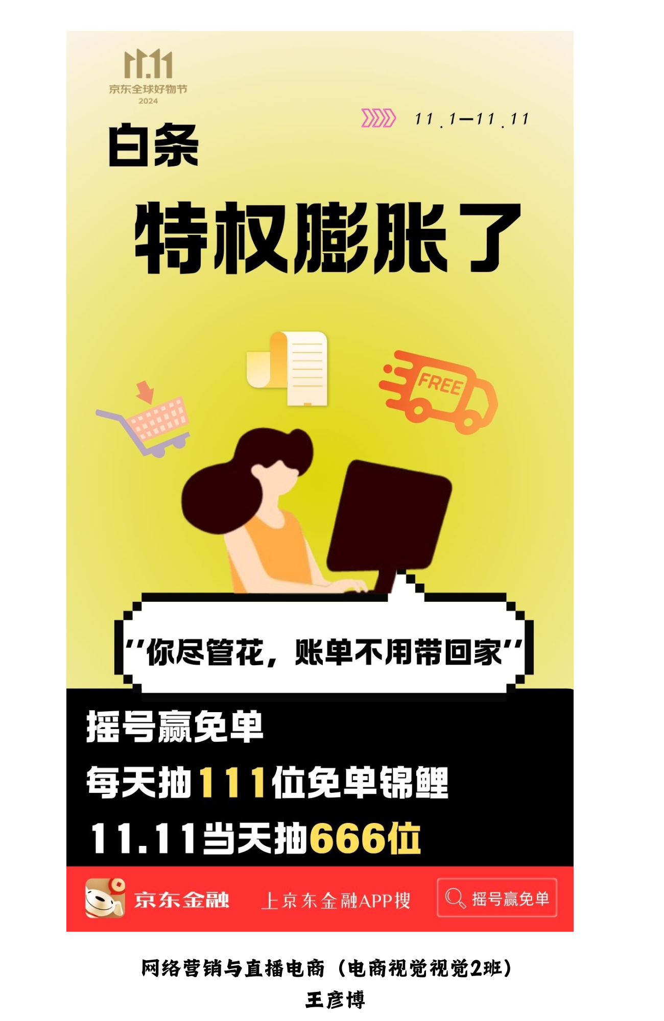 在《直播电商脚本策划》的课程实践中,2023届网络营销与直播电商专业的学生们,以各大电商品牌产品为蓝本,展开了一场营销文案与活动策划的可视化训练。经过一年电商直播理论与实践的学习,学生们已具备一定的品牌认知和产品卖点提炼能力。 本次展出的系列品牌产品海报与长图,是从学生课堂作业中筛选的较为优秀的作品,作品涵盖了库迪、瑞幸等饮品品牌,小米等科技产品,以及微信读书、京东金融APP等应用,风格多样,创意十足。学生们在缺乏Photoshop等专业软件基础的情况下,利用Canva、创客贴等基础在线设计工具,通过模仿与创新,将课程中学到的品牌认知、卖点提炼、活动策划、场景塑造等理论知识灵活应用于海报创作中,这些海报不仅锻炼了学生们的产品信息提炼能力,还考验了他们的文图排版、色彩搭配与元素选择技巧。 本次系列优秀作品展出,不仅是对学生们本学期学习成果的一次检阅,更是对他们创意与实践能力的展示。每幅作品都凝聚着学生们的心血与创意,展现出了他们在品牌产品信息提炼、文图排版等方面的潜能。希望这次展出能够激励更多同学积极参与课程实践,相互学习,共同进步,为未来的直播电商领域注入更多新鲜血液与创新活力。 审核:石冰清 编辑:杨安易 排版:慕若华