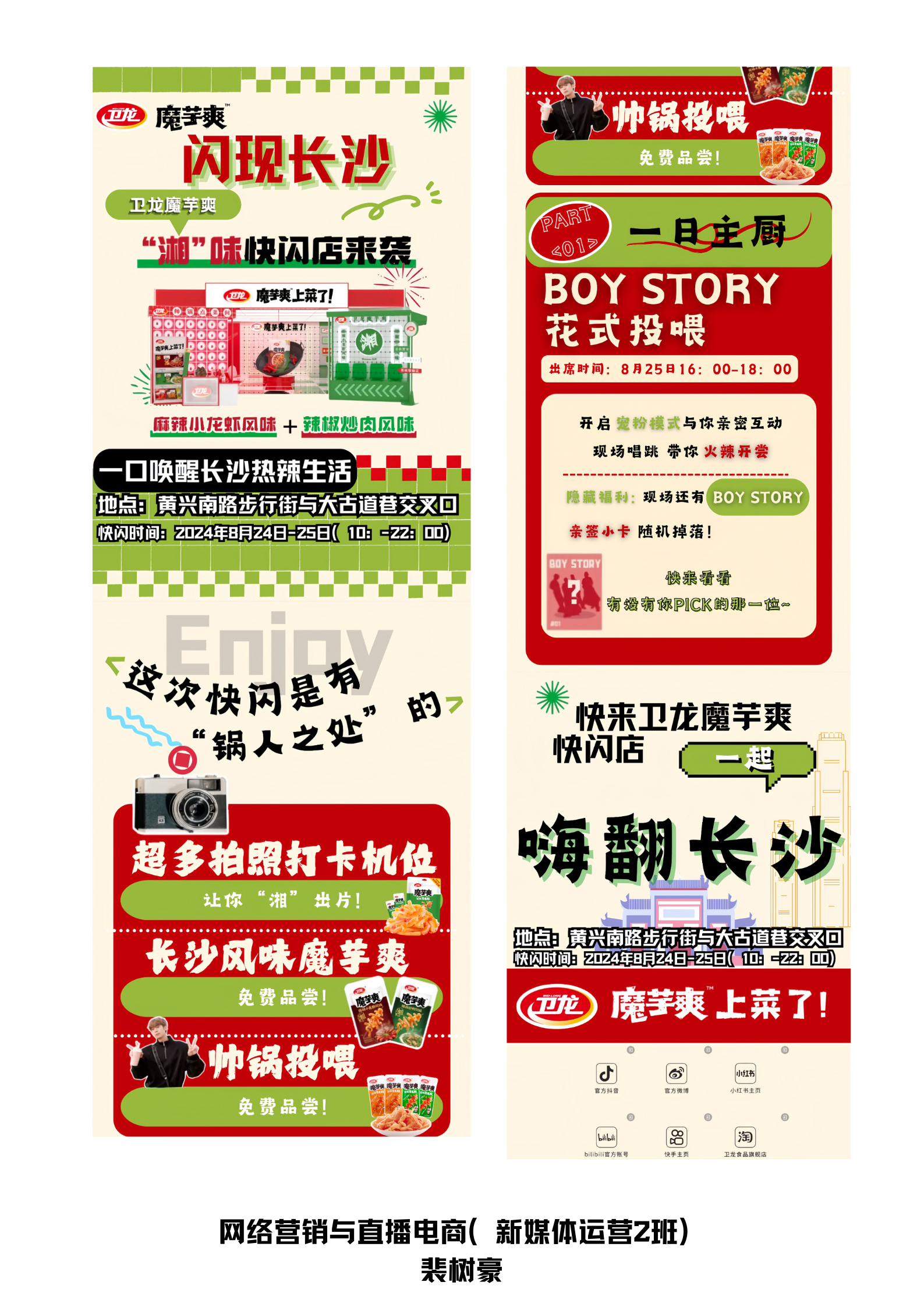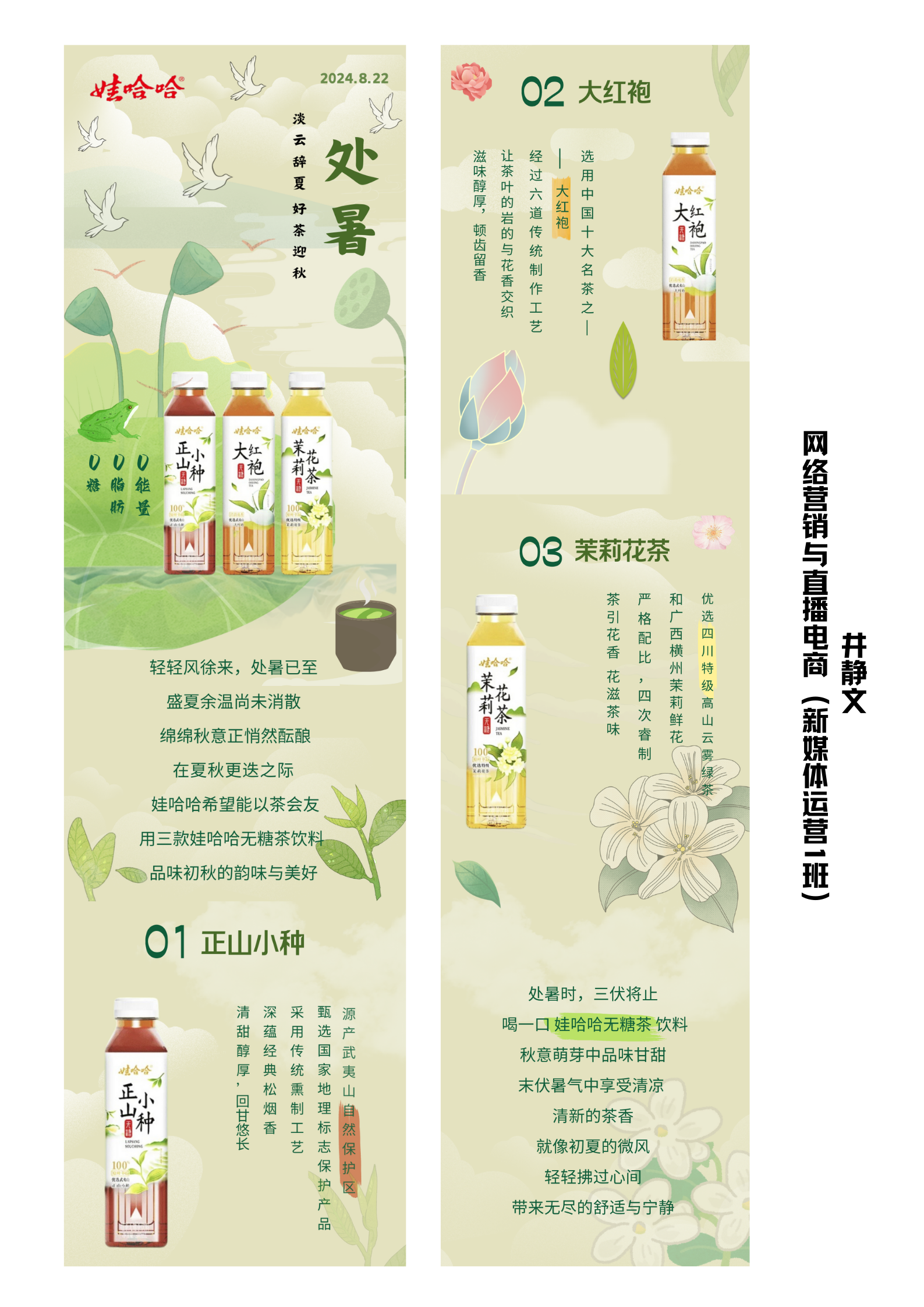 本次系列优秀作品展出,不仅是对学生们本学期学习成果的一次检阅,更是对他们创意与实践能力的展示。每幅作品都凝聚着学生们的心血与创意,展现出了他们在品牌产品信息提炼、文图排版等方面的潜能。希望这次展出能够激励更多同学积极参与课程实践,相互学习,共同进步,为未来的直播电商领域注入更多新鲜血液与创新活力。