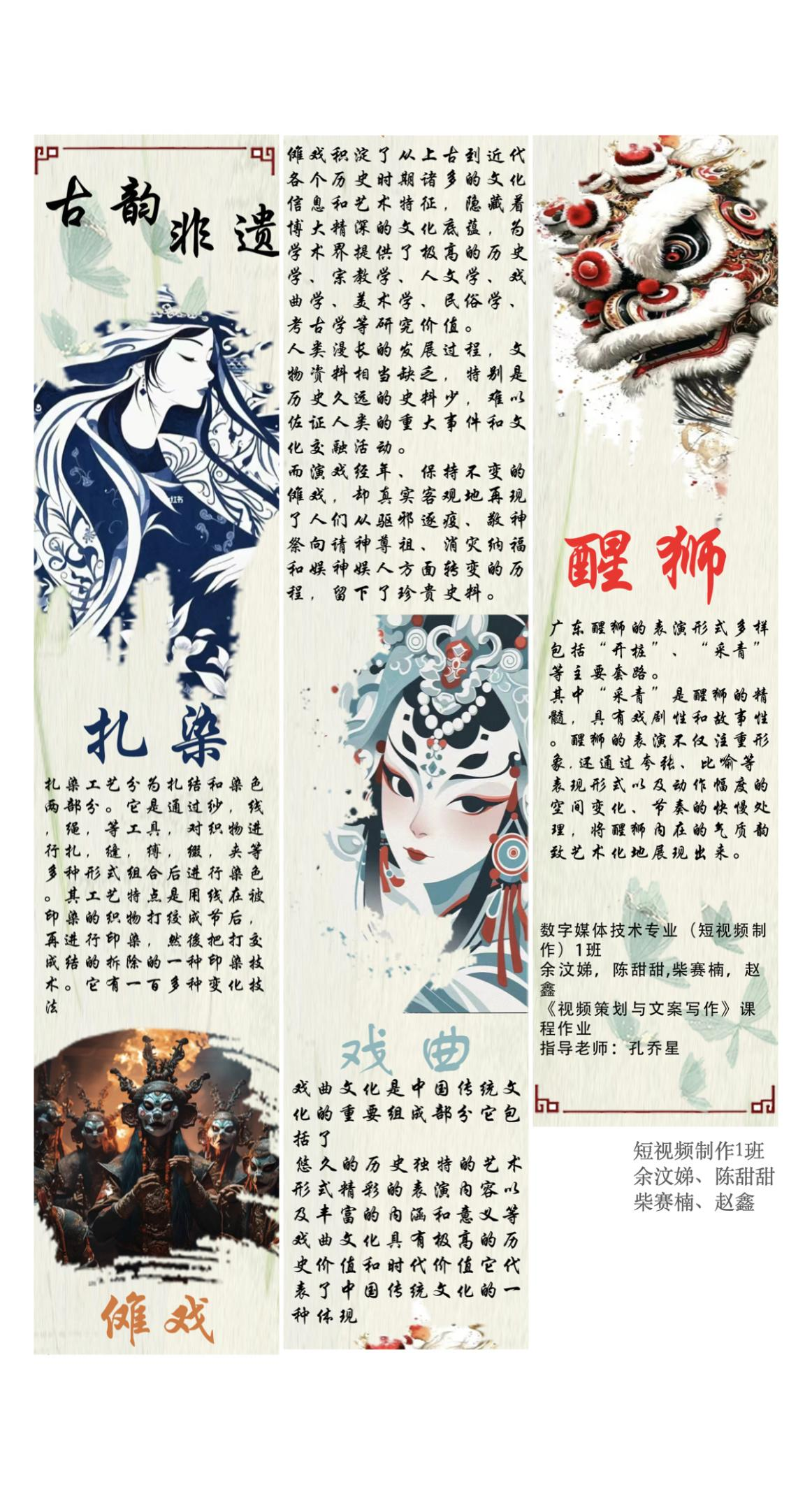 本次线上展览集中展示了传媒学院学子们围绕六大主题——节日节气、校园、文化、预防倡导、科普、健康养生所创作的精彩长图推送设计。 从独特视角出发,学生们巧妙融合创意与技艺,用一幅幅生动鲜活的长图,讲述着节日的温馨、校园的故事、预防的重要、科普的趣味、文化的深邃、养生的智慧。这些作品不仅展现了学生们扎实的专业技能,更体现了他们对社会生活的敏锐洞察和深刻思考。 让我们一同走进这场视觉盛宴,感受创意的火花,见证传媒新星的璀璨绽放!在这里,每一幅作品都是一个故事,每一段文案都蕴含深意,期待您的品鉴与共鸣。 三、文化主题 指导教师:孔乔星 审核:石冰清 编辑:杨安易 排版:李思莹