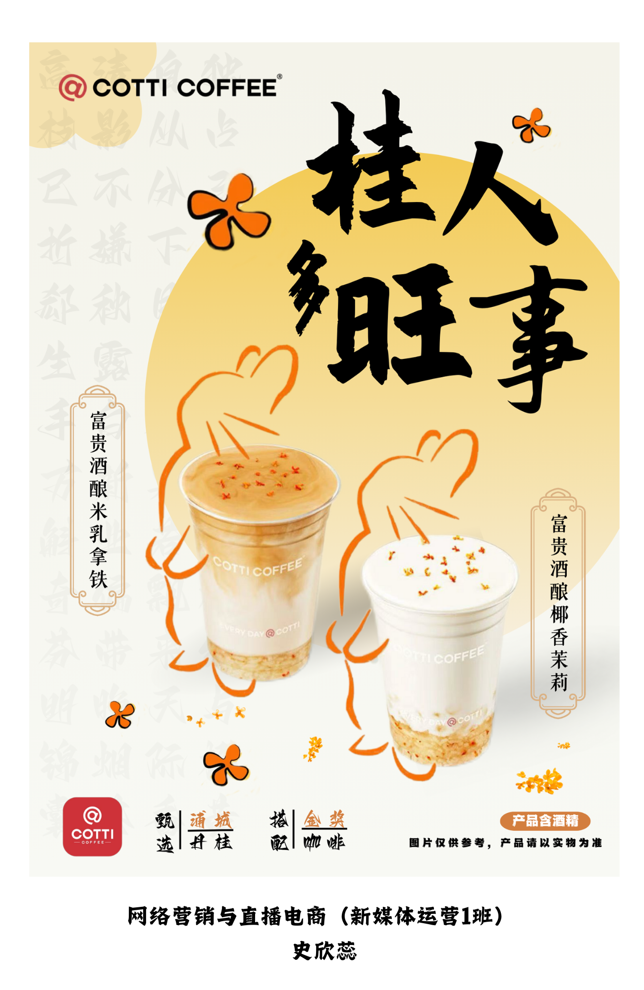 本次展出的系列品牌产品海报与长图,是从学生课堂作业中筛选的较为优秀的作品,作品涵盖了库迪、瑞幸等饮品品牌,小米等科技产品,以及微信读书、京东金融APP等应用,风格多样,创意十足。学生们在缺乏Photoshop等专业软件基础的情况下,利用Canva、创客贴等基础在线设计工具,通过模仿与创新,将课程中学到的品牌认知、卖点提炼、活动策划、场景塑造等理论知识灵活应用于海报创作中,这些海报不仅锻炼了学生们的产品信息提炼能力,还考验了他们的文图排版、色彩搭配与元素选择技巧。