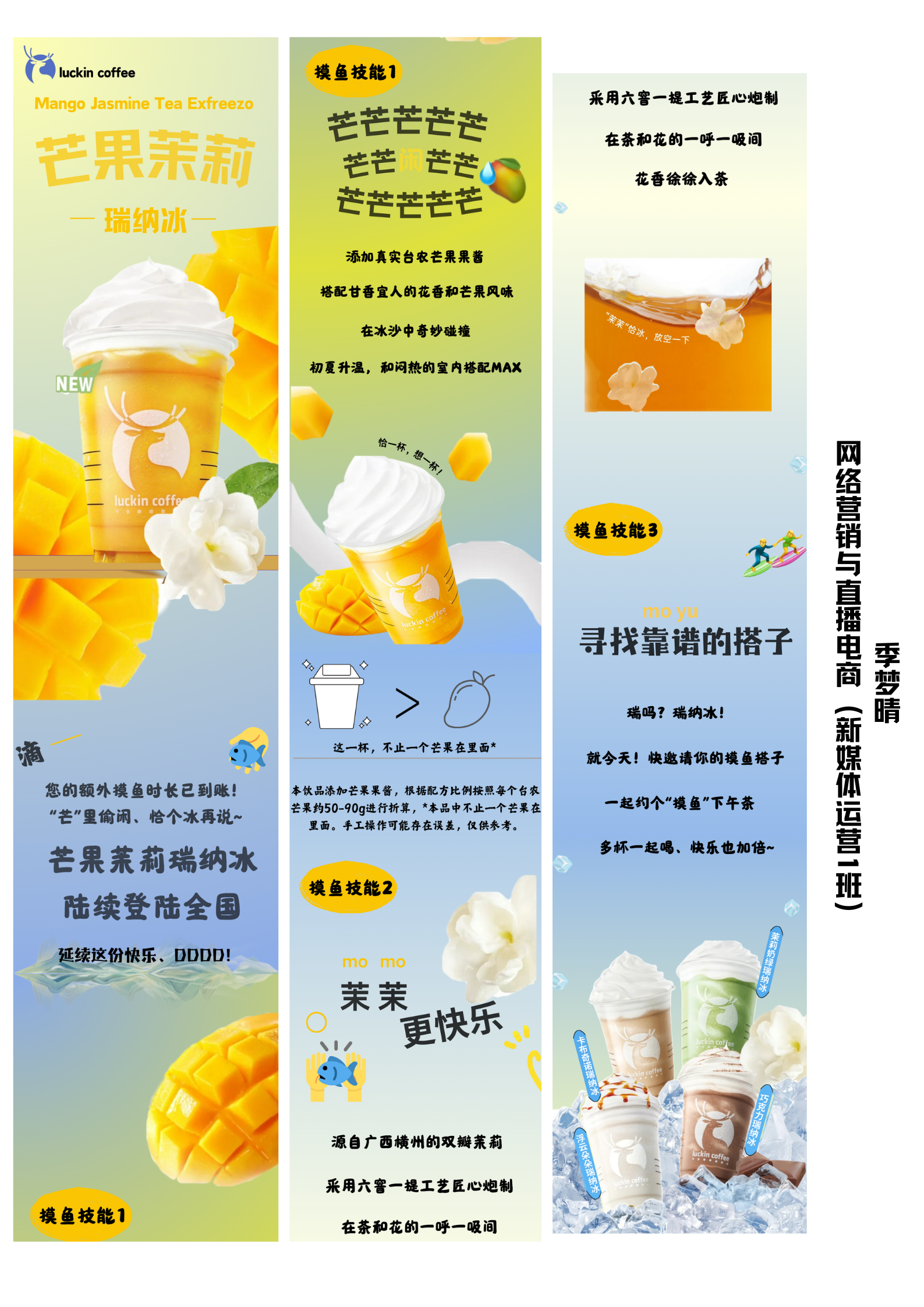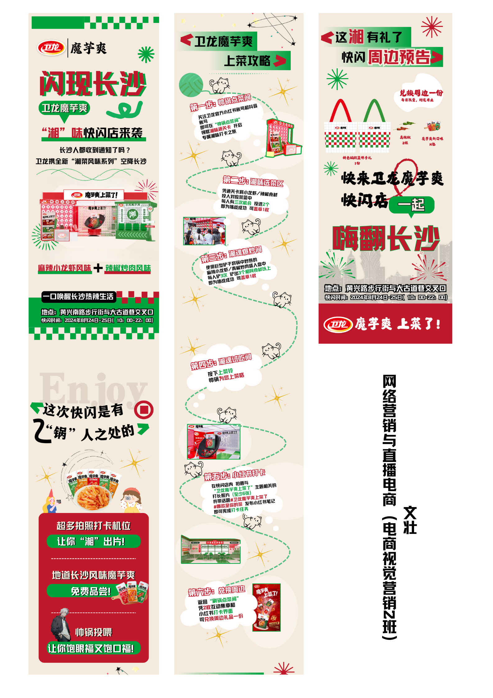 本次系列优秀作品展出,不仅是对学生们本学期学习成果的一次检阅,更是对他们创意与实践能力的展示。每幅作品都凝聚着学生们的心血与创意,展现出了他们在品牌产品信息提炼、文图排版等方面的潜能。希望这次展出能够激励更多同学积极参与课程实践,相互学习,共同进步,为未来的直播电商领域注入更多新鲜血液与创新活力。