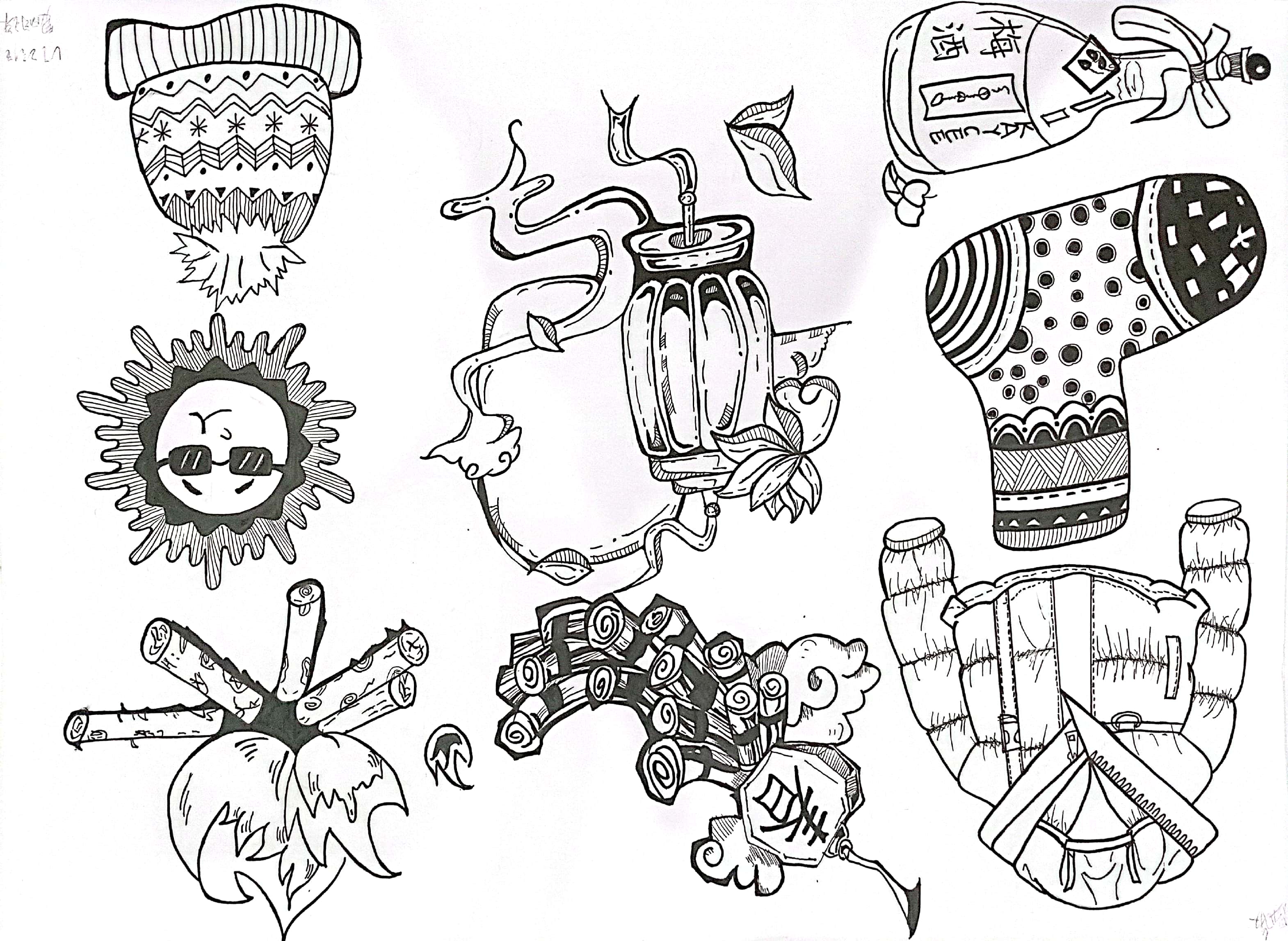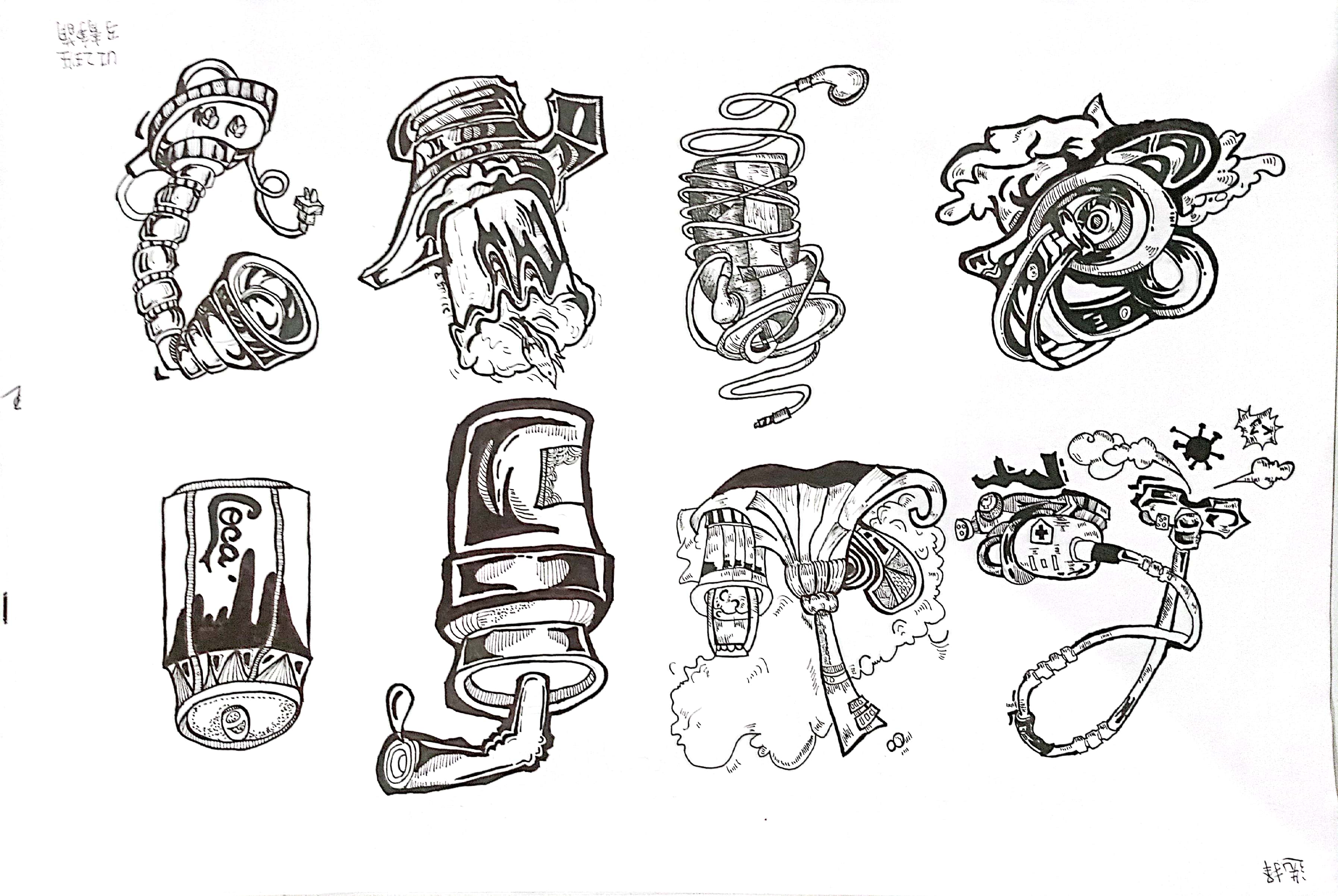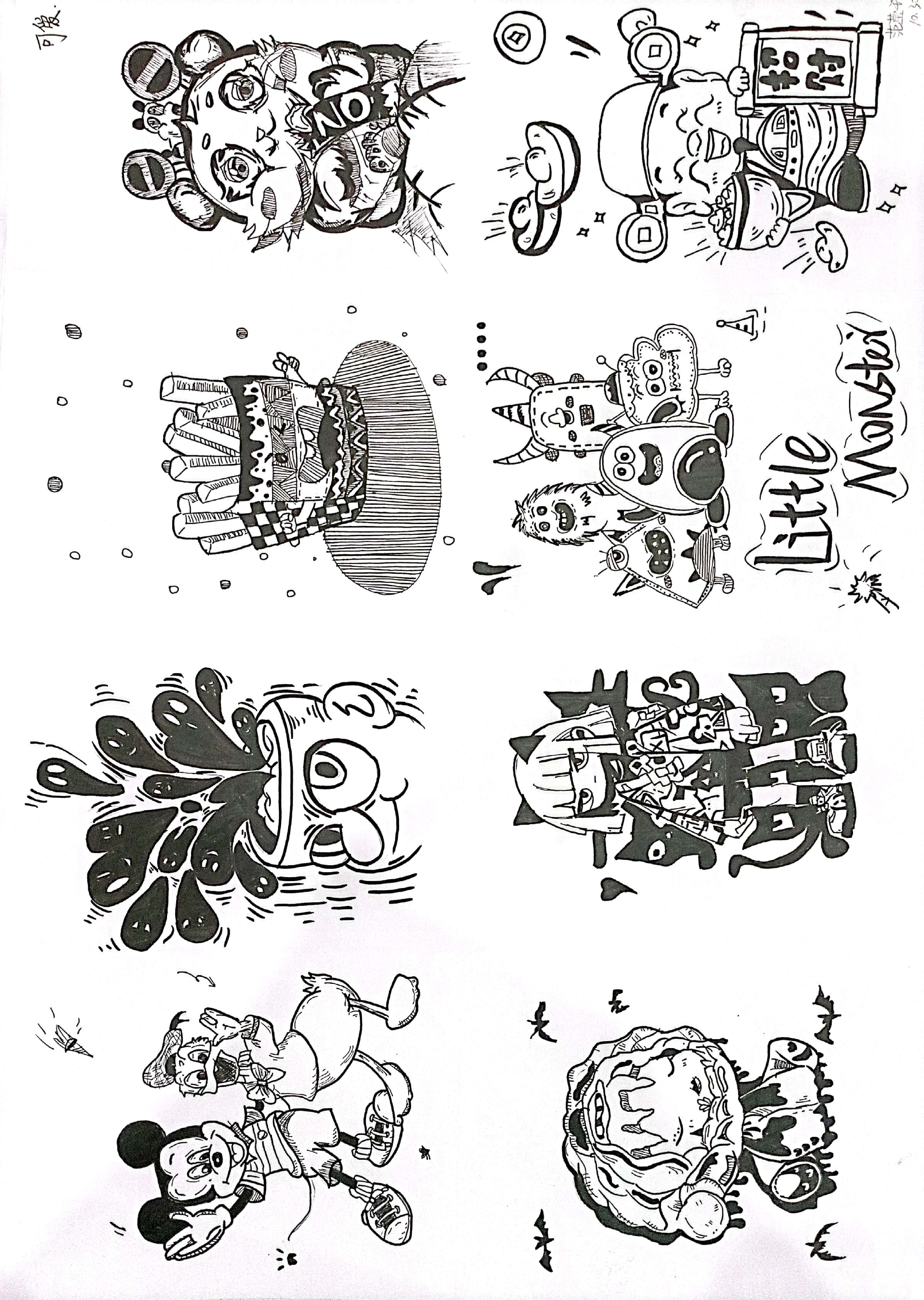 联想是图形创意设计的关键,是形成创意设计思维,联系不同事物的基础。人们思考事物常表现为四种联想方式:形象联想、意向联想、连带联想、逆向联想。 学生从“责任”“选择”“权力”“等待”“安全”“温暖”“友好”“富有”“可爱”“发展”“速度”中选择一个词语进行意象联想或者连带联想,进行创作8个图形,以下是每个班级优秀作业展示:(排名不分先后