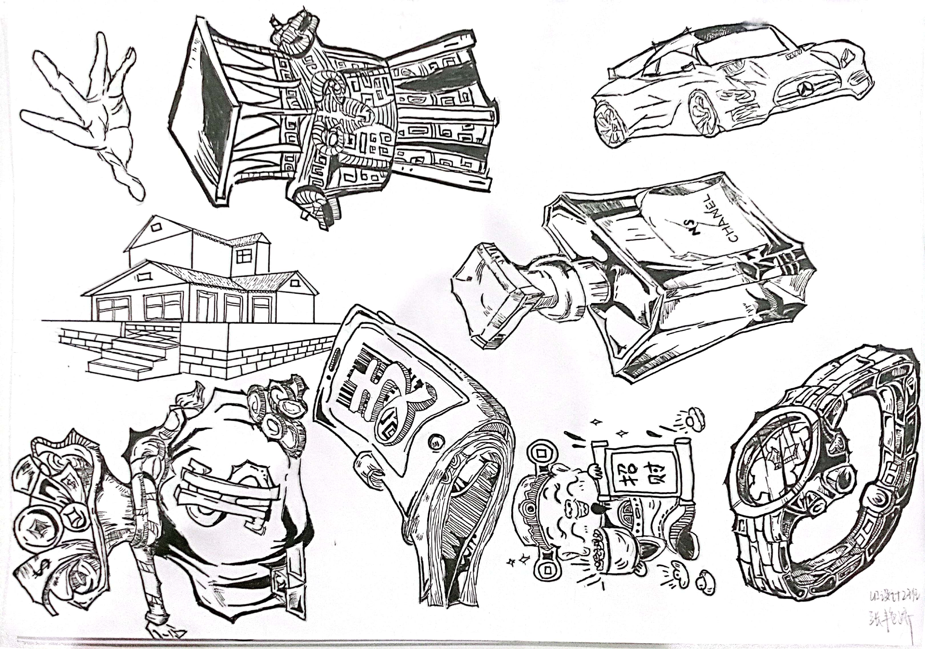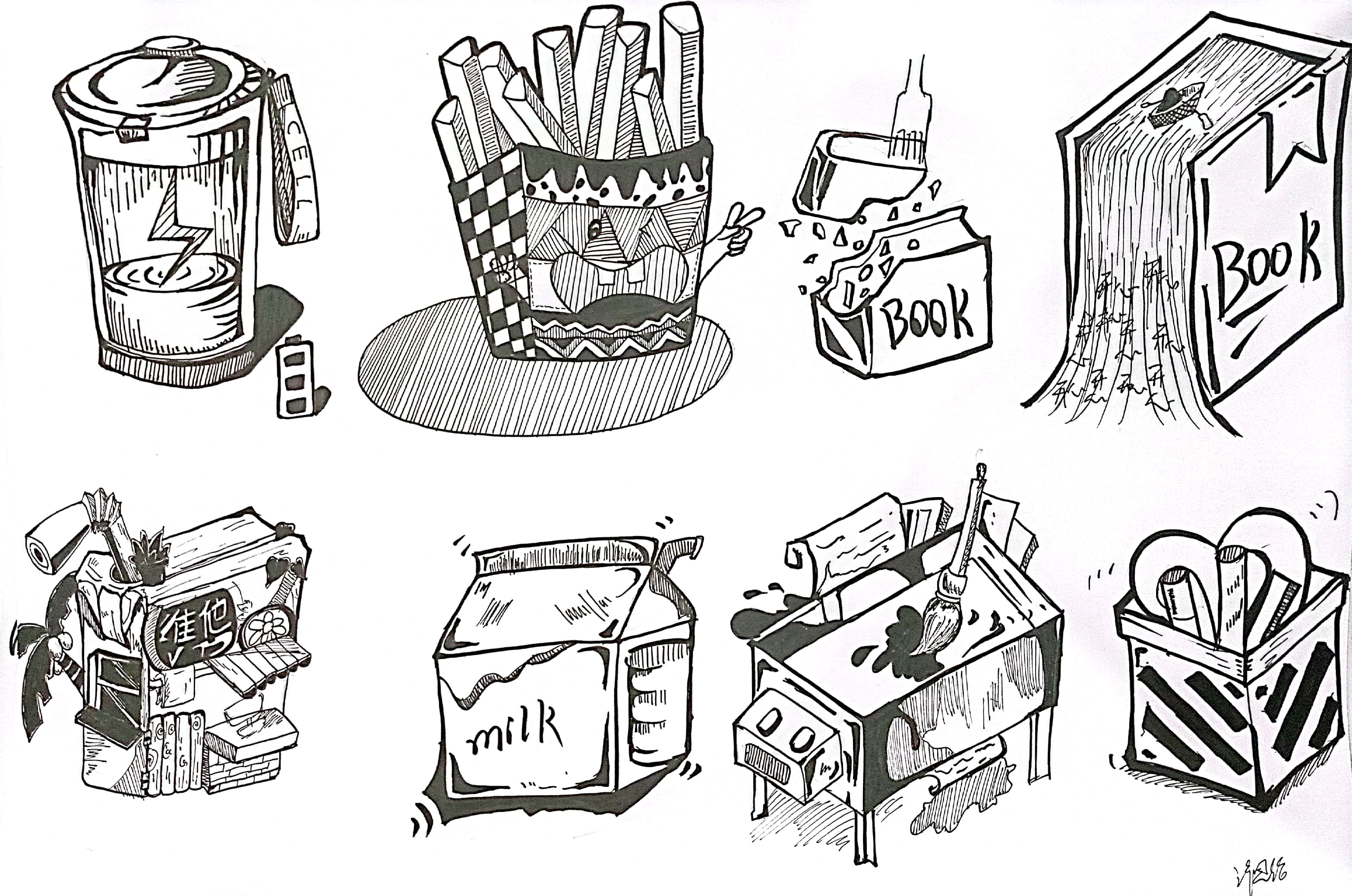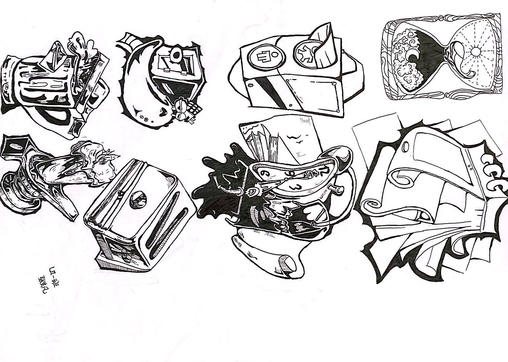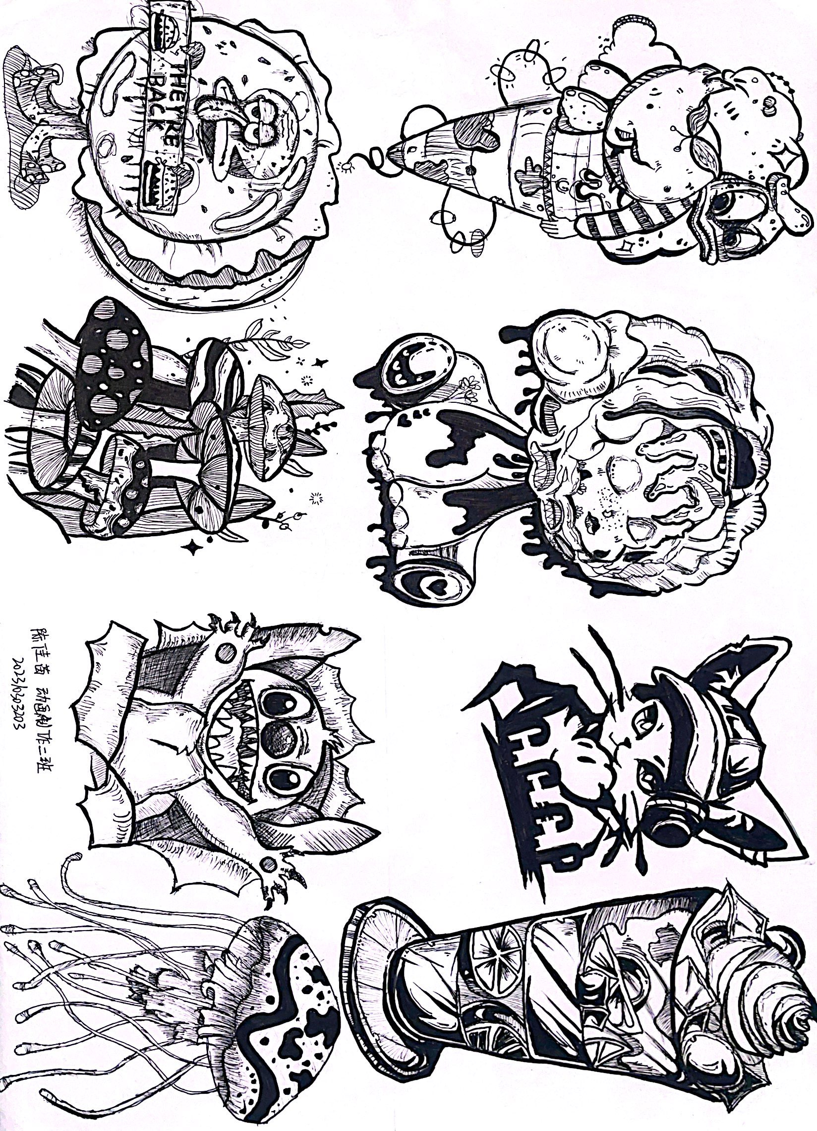 联想是图形创意设计的关键,是形成创意设计思维,联系不同事物的基础。人们思考事物常表现为四种联想方式:形象联想、意向联想、连带联想、逆向联想。 学生从“责任”“选择”“权力”“等待”“安全”“温暖”“友好”“富有”“可爱”“发展”“速度”中选择一个词语进行意象联想或者连带联想,进行创作8个图形,以下是每个班级优秀作业展示:(排名不分先后