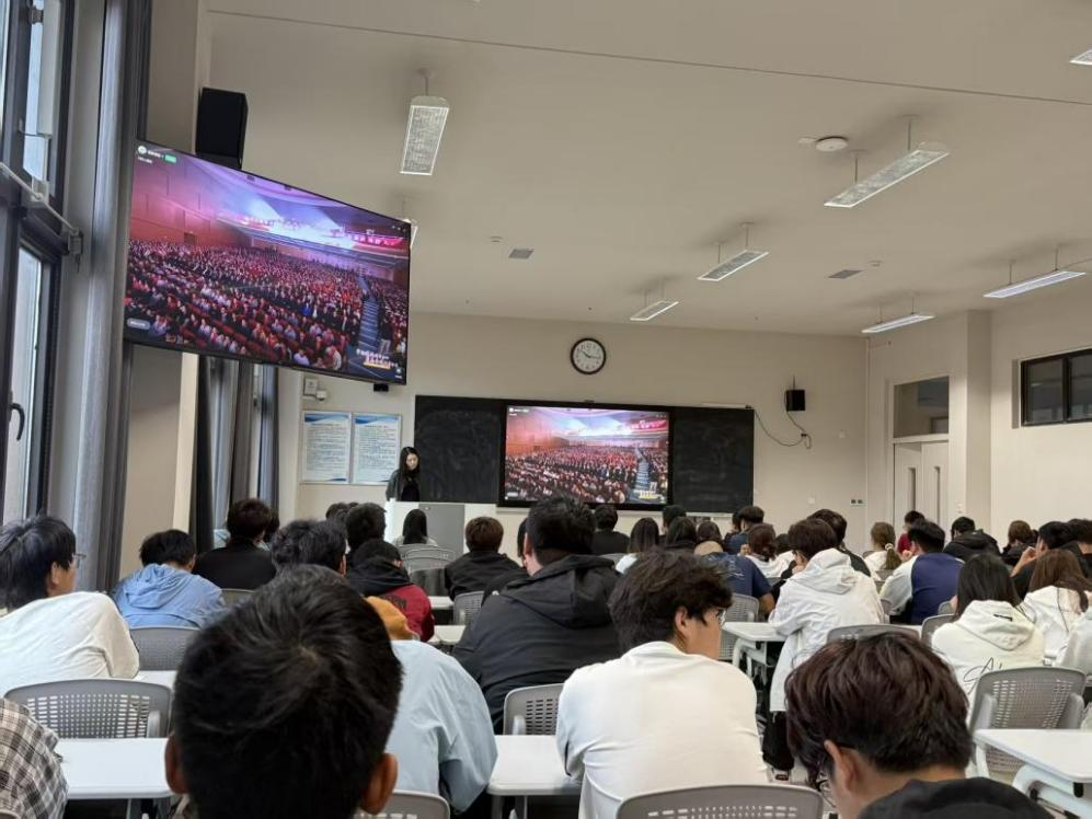 为激励传媒学子铭记嘱托、锤炼本领,以昂扬奋进之姿挺膺担当发展重任。9月22日,传媒学院“一站式”学生社区组织学生共同参与“牢记嘱托践行初心,感恩奋进挺膺担当”——2025 年河南省秋季开学思政第一课的线上直播活动,开启新学期的青春旅程。