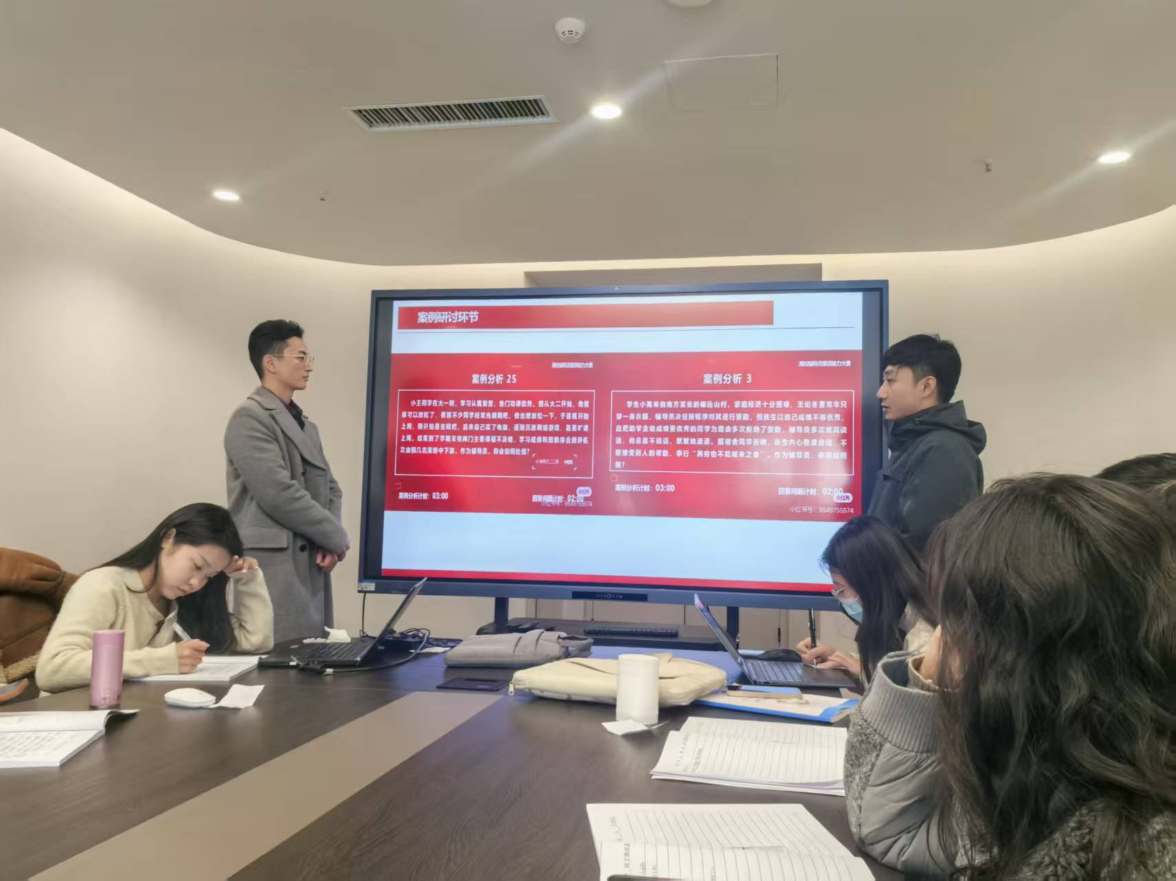 传媒学院团总支书记、学生工作办公室主任赵梦梦结合新形势下辅导员工作要求,详细讲解了案例分析的审题方法和答题逻辑,帮助大家巩固专业知识,提升辅导员处理复杂案例的工作能力。随后,现场的辅导员们聚焦学生管理的实际案例开展问答,挖掘案例背后的深层原因,在问答中规范答题思路,总结更具实效的工作措施。