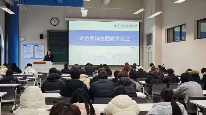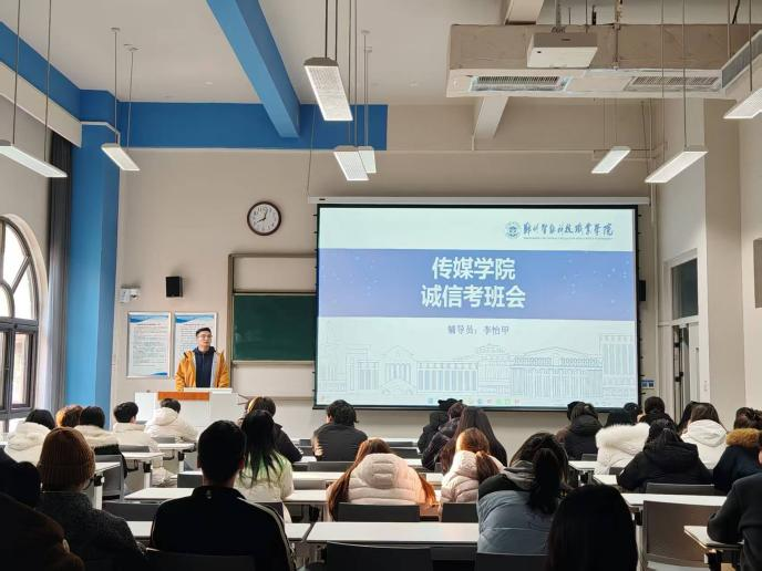 为扎实做好学期末考风考纪与学风建设工作,进一步深化诚信考试教育,进一步深化学生诚信考试教育,保障考试环节有序推进,营造良好的学习氛围,近期,传媒学院“一站式”学生社区全体辅导员集中开展“以诚正考风,以德育学魂”主题班会。 在班会上,辅导员立足传媒专业特色向同学们分享了高效复习技巧,助力学生搭建科学的学习规划框架,帮助大家优化备考时间分配、攻克知识薄弱环节。同时,辅导员重点解读考试相关管理条例,通过深度剖析考试舞弊典型案例,直观清晰地阐明违规违纪行为的严重影响,警醒同学们坚守考试纪律红线,秉持诚信准则,凭借扎实学识完成期末各项考核。此外,辅导员还引导同学们做好心态调节,以沉稳自信的心态应对考试,让诚信考风扎根校园。 此次诚信考试主题教育活动的开展,有效强化了同学们的诚信意识,淬炼了诚信素养,弘扬了诚信风尚。下一步,传媒学院将持续加强考前教育引导与考试秩序规范管理,推动诚信育人工作落到实处、走深走实,不断夯实学院学风建设根基,着力营造风清气正的校园育人氛围。 审核:张澎、石冰清 初审:赵梦梦、宋晓焱 编辑:王孟珂 排版:高盈盈