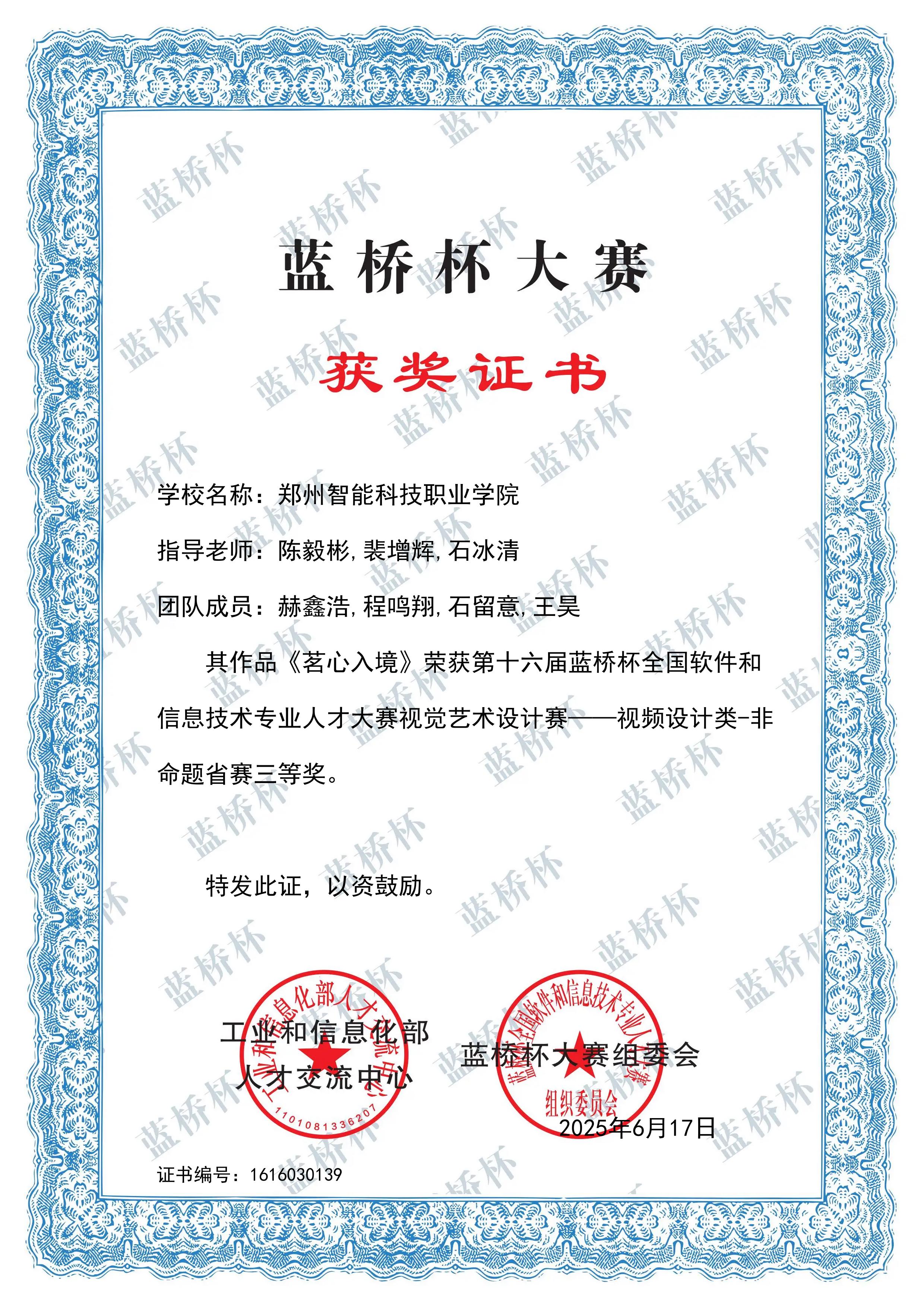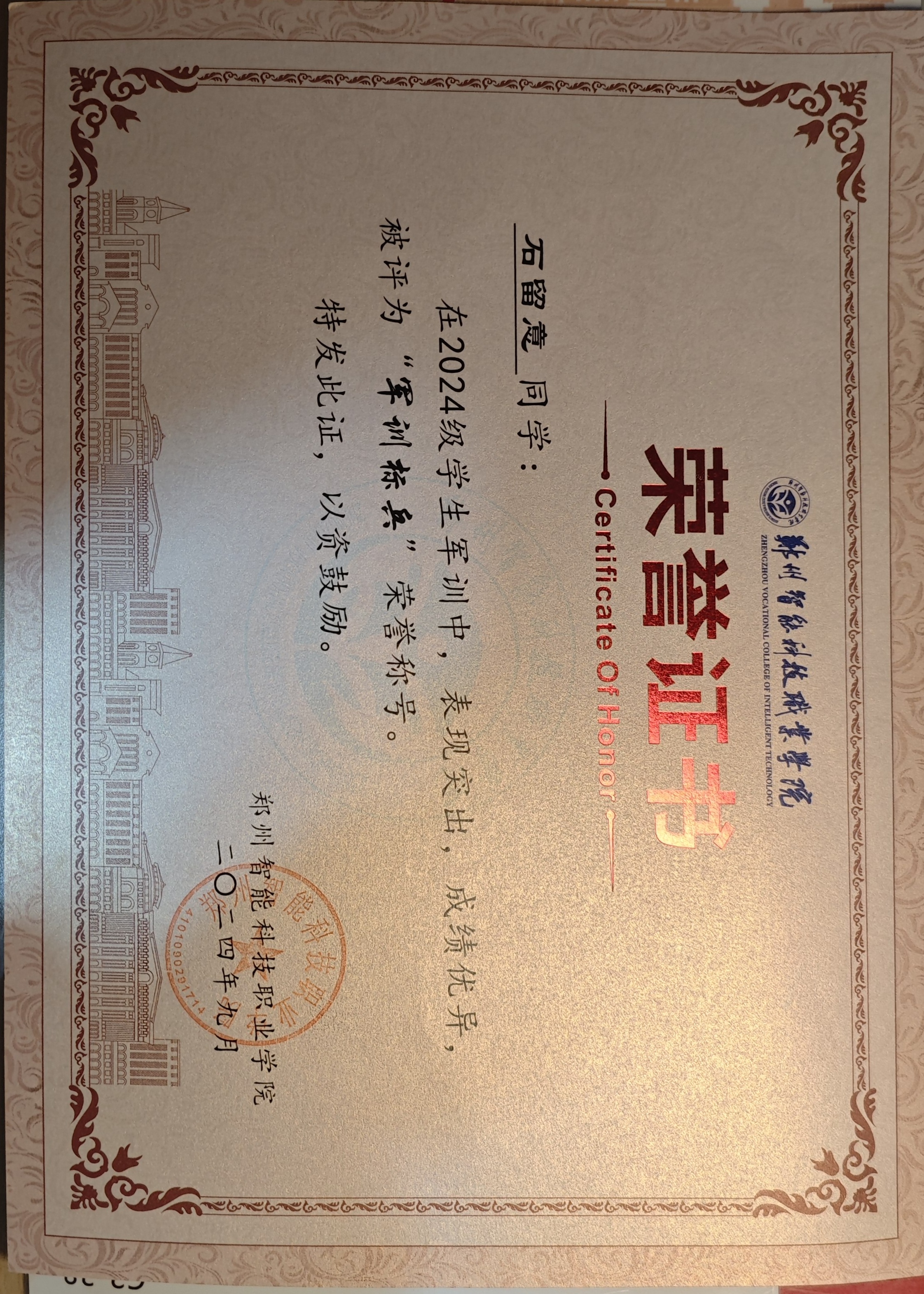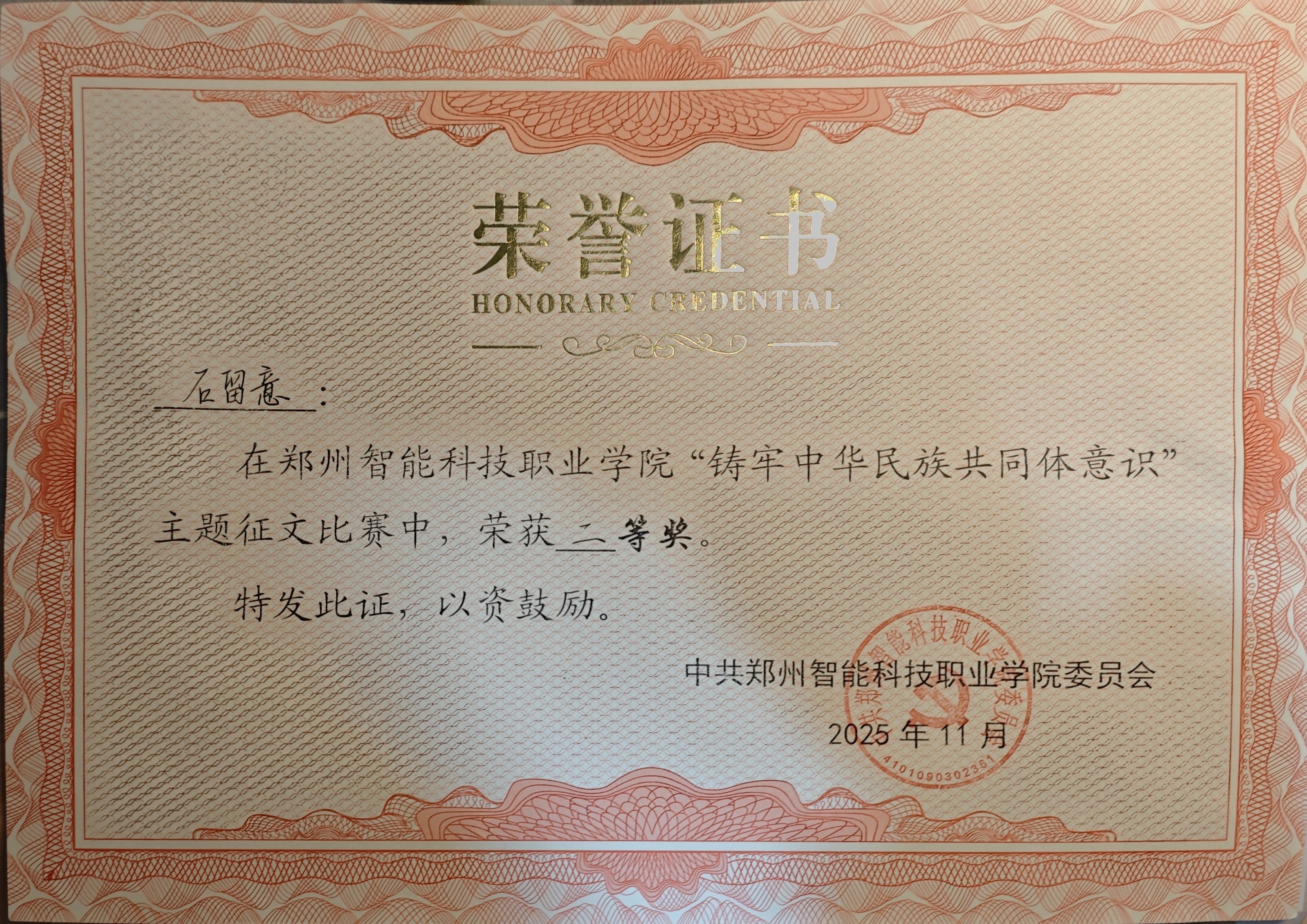石留意,男,共青团员,郑州智能科技职业学院传媒学院2024级摄影摄像技术1班班长兼团支书,2025年国家励志奖学金获得者。大一学年成绩班级第一,综测排名班级第一;斩获2024第十七届蓝桥杯全国软件和信息技术专业人才大赛省三等奖,2025“铸牢中华民族共同体意识”主题征文比赛二等奖,获评“优秀学生干部”、“三好学生”、“文明学生”、“军训标兵”等荣誉称号。 课堂上,他深耕光影艺术;镜头下,他定格校园美好;班级中,他勇挑责任重担;服务中,他践行青春担当。今天,让我们一同走进传媒学院2024级摄影摄像技术1班的石留意同学,探寻他以热爱聚焦镜头世界、以奉献诠释学子担当的成长之路。 笃学·深耕光影,夯实基础 “摄影是光与影的艺术,而扎实的专业功底是按下快门的底气。”作为摄影摄像技术专业的学生,他始终秉持“精益求精、追求极致”的学习态度。课堂上,他跟着老师钻研《摄影构图》《影视灯光》等核心课程,实操练习时总是冲在前面,经常把自己的拍摄心得分享给同学。大一学年,他以学业、综测双第一的好成绩,给身边同学树立了榜样。 竞逐·以赛促学,砺练锋芒 赛场是检验能力的试金石,他始终保持着敢闯敢拼的劲头。在2025年第十七届蓝桥杯大赛中,他主动包揽脚本分镜设计,进入后期剪辑阶段,他发挥专业优势,承担起素材筛选、配乐字幕的重任,团队在激烈角逐中脱颖而出,斩获省赛三等奖;在2025“铸牢中华民族共同体意识”主题征文比赛中,他以细腻的笔触、真挚的情感,书写民族交融的动人故事,一举拿下二等奖。在红气球挑战赛郑州赛区的比拼中,他与团队并肩作战,凭借坚定的毅力和默契的配合顺利完赛,斩获完赛证书。一次次参赛,不仅让他收获了荣誉,更让他学会了在挑战中成长,也为学校争光添彩。 担当·身兼双职,服务师生 作为班级班长兼团支书,他心里始终装着同学和集体。他牵头组织班级特色晚自习活动、破冰活动,为班级注入满满活力;他积极配合学院工作,主动承担起学院各类活动的拍摄任务,无论是开学典礼、军训汇演,还是迎新晚会、讲座分享,总能看到他举着相机忙碌的身影,免费为活动留下高清影像资料。 日常里,他是辅导员的得力助手,帮忙整理班级资料、传达通知;他是同学们的贴心伙伴,谁在学习上遇到难题,他都会耐心讲解;谁在拍摄作业上卡了壳,他都会热心指导。他这份热忱与付出,让他收获了“优秀学生干部”的荣誉认可。 青春寄语 青春是敢闯敢拼的赛场,是热忱奉献的舞台。愿你带着这份对专业的执着、对集体的热忱,在未来的日子里,拍出更美的风景,活成更耀眼的模样!