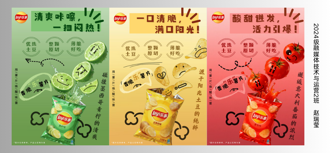 从策略精准的定位语,到视觉冲击力强的画面构图,学生作品展现出对品牌传播与视觉表达的初步驾驭能力。部分作品在创意概念、文案撰写与视觉执行上已呈现出良好的市场适配性,体现了学生们将理论知识转化为实践成果的成长轨迹。