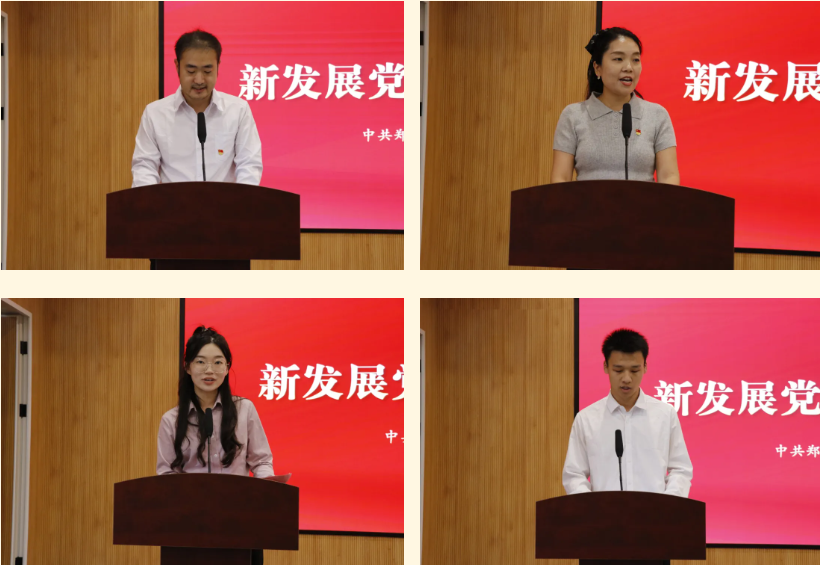 新党员代表邵帅在发言中表达了将立足岗位、履职尽责,为学校高质量发展贡献力量的坚定决心。老党员代表李克森在发言中鼓励新党员要将个人理想融入党和人民事业,践行职责使命;优秀党员代表谢静分享了立足平凡岗位践行党员使命的体会;入党积极分子代表梁明昂表示将用实际行动表达自己加入党组织的决心。