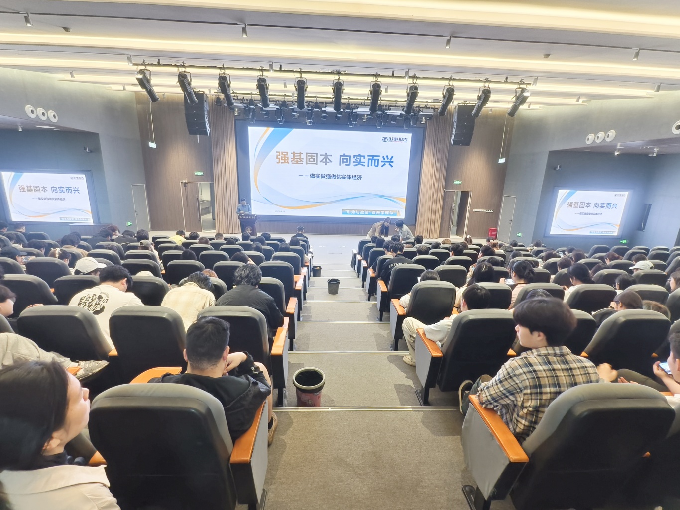 为全面落实立德树人根本任务,筑牢青年学生思想根基,4月16日上午,校党委书记李光贵为2024级学生讲授“强基固本,向实而兴”形势与政策专题思政课,引领青年学生深刻把握实体经济发展要义。
