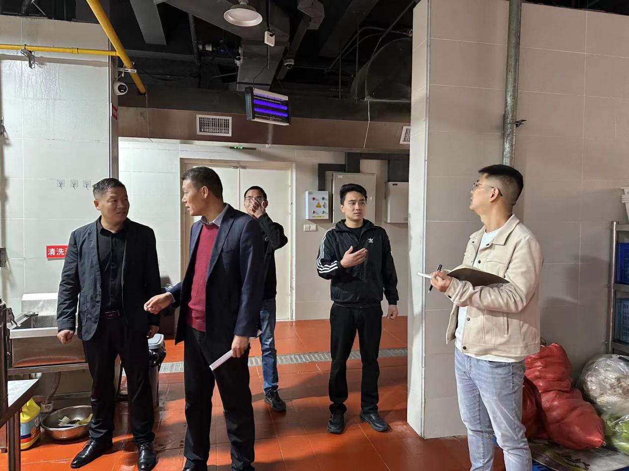 本次检查以“全覆盖、无死角、严标准”为原则,重点聚焦以下核心环节,深入餐厅后厨、操作间、毛菜间、切配间等各个区域全面排查。在食品安全溯源方面,检查小组核查食品留样记录及现场留样情况;在操作流程规范方面,深入后厨查看清洗消毒记录、生熟食品分开存放情况,以及工作人员健康证与穿戴规范,杜绝交叉污染风险;在环境卫生管理中,对后厨操作间清洁度、排水沟疏通情况、垃圾分类处理等细节进行全面排查;在消防安全方面,查看灭火器、消火栓、电线电气电箱是否规范。