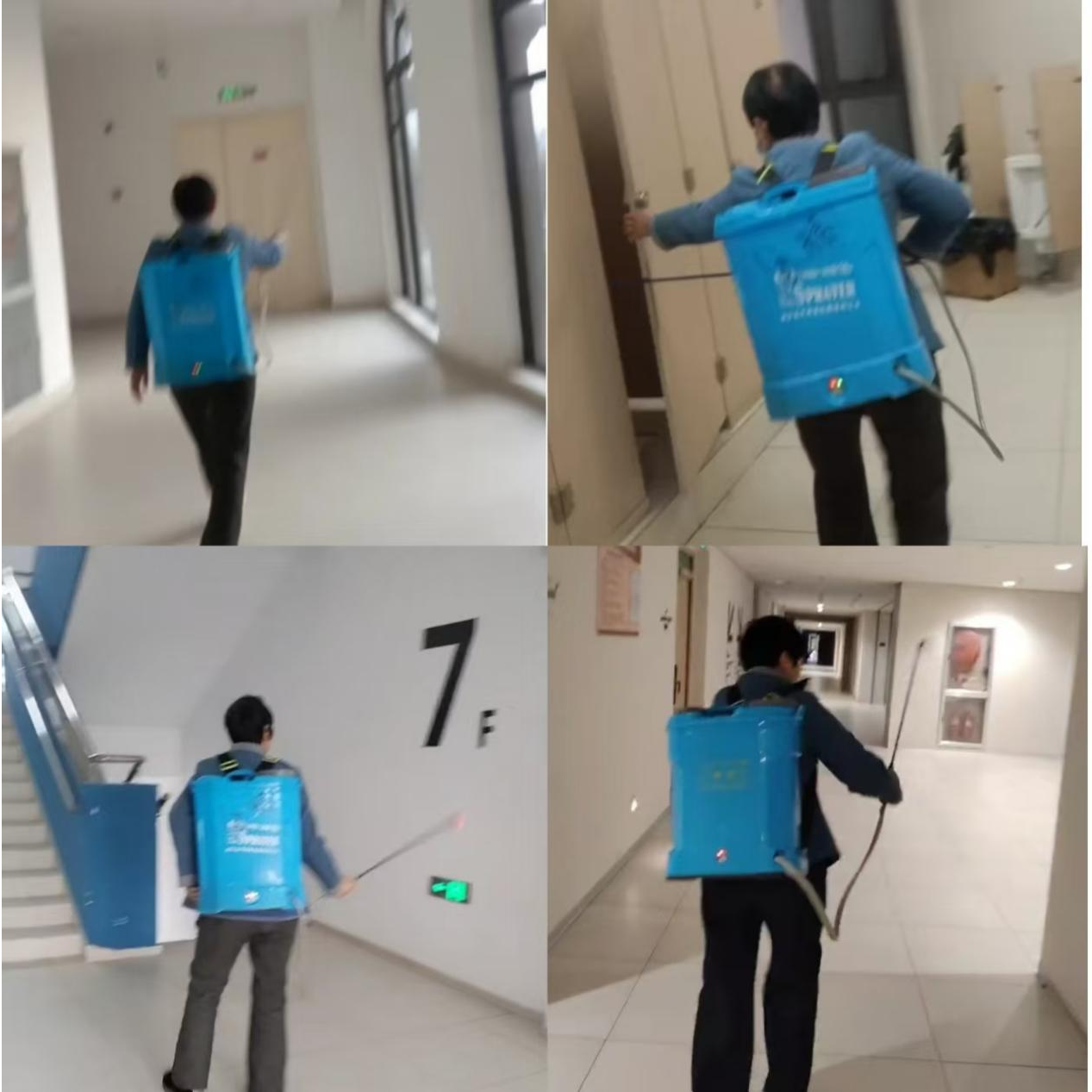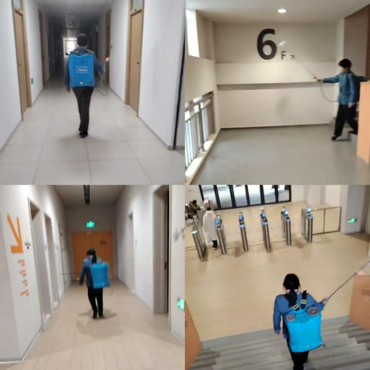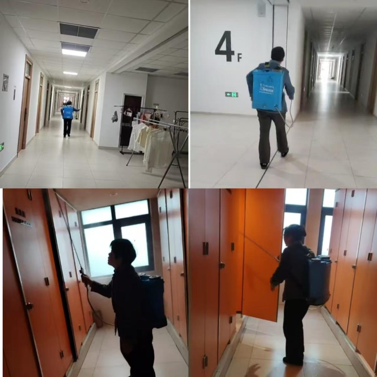 清晨,严格按照操作规程,对教学楼、宿舍等公共区域进行全覆盖、无死角的预防性消毒。针对楼道、门把手、电梯按钮、桌椅等高频接触部位,均实施重点喷洒与擦拭,确保消毒彻底、安全有效。