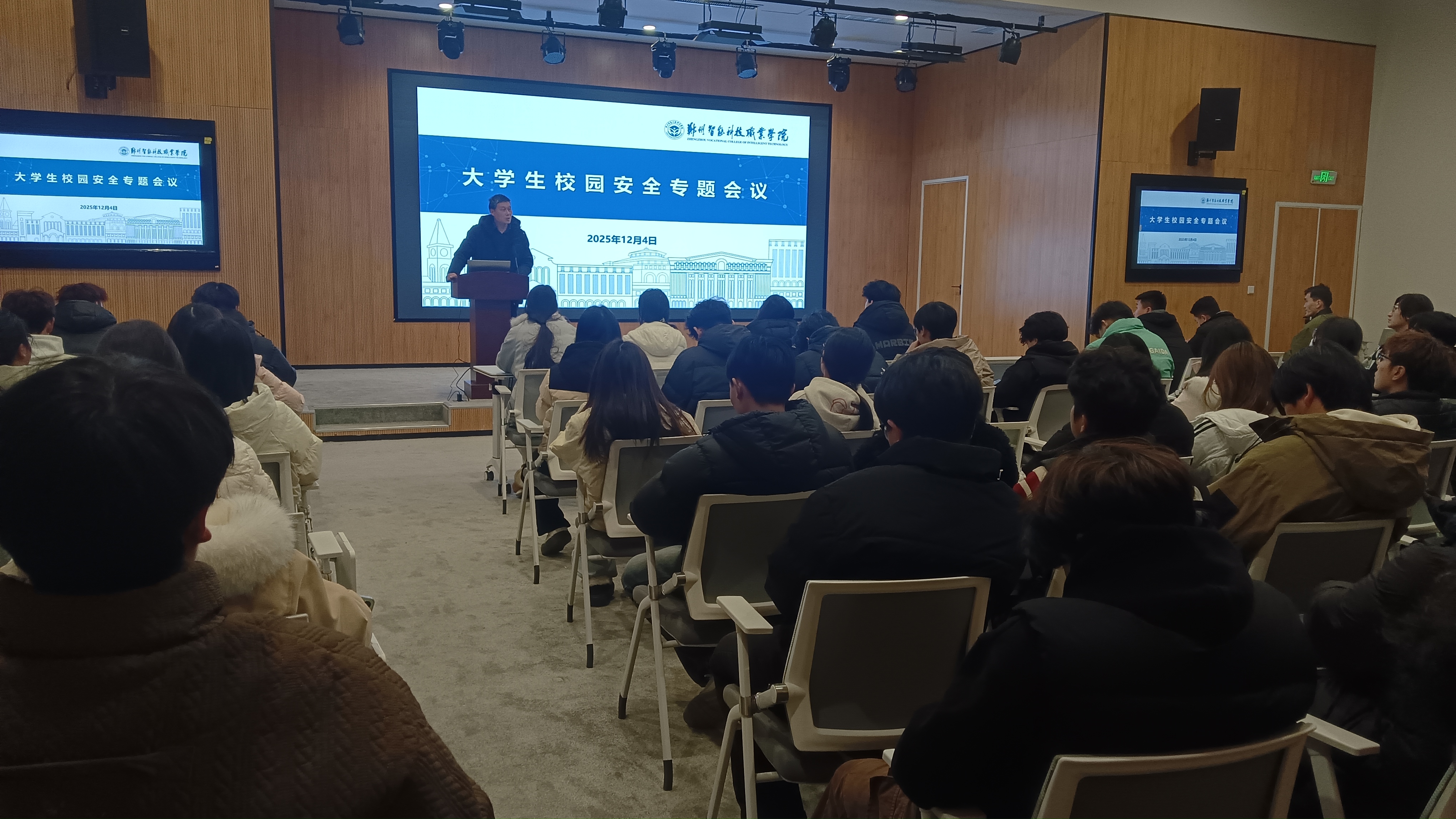 12月4日晚,我校在艺术中心多媒体会议室召开大学生校园安全专题会议,各学院学生干部代表参会。会议通报了近期校园安全形势与检查情况,并围绕 “防范电信网络诈骗”“消防安全知识”“突发事件应急处置” 等主题展开宣讲与交流。会议旨在强化学生干部的安全意识与责任担当,发挥其桥梁纽带作用,将安全理念传递至广大同学之中,共同构建全员参与、群防群治的校园安全网络。