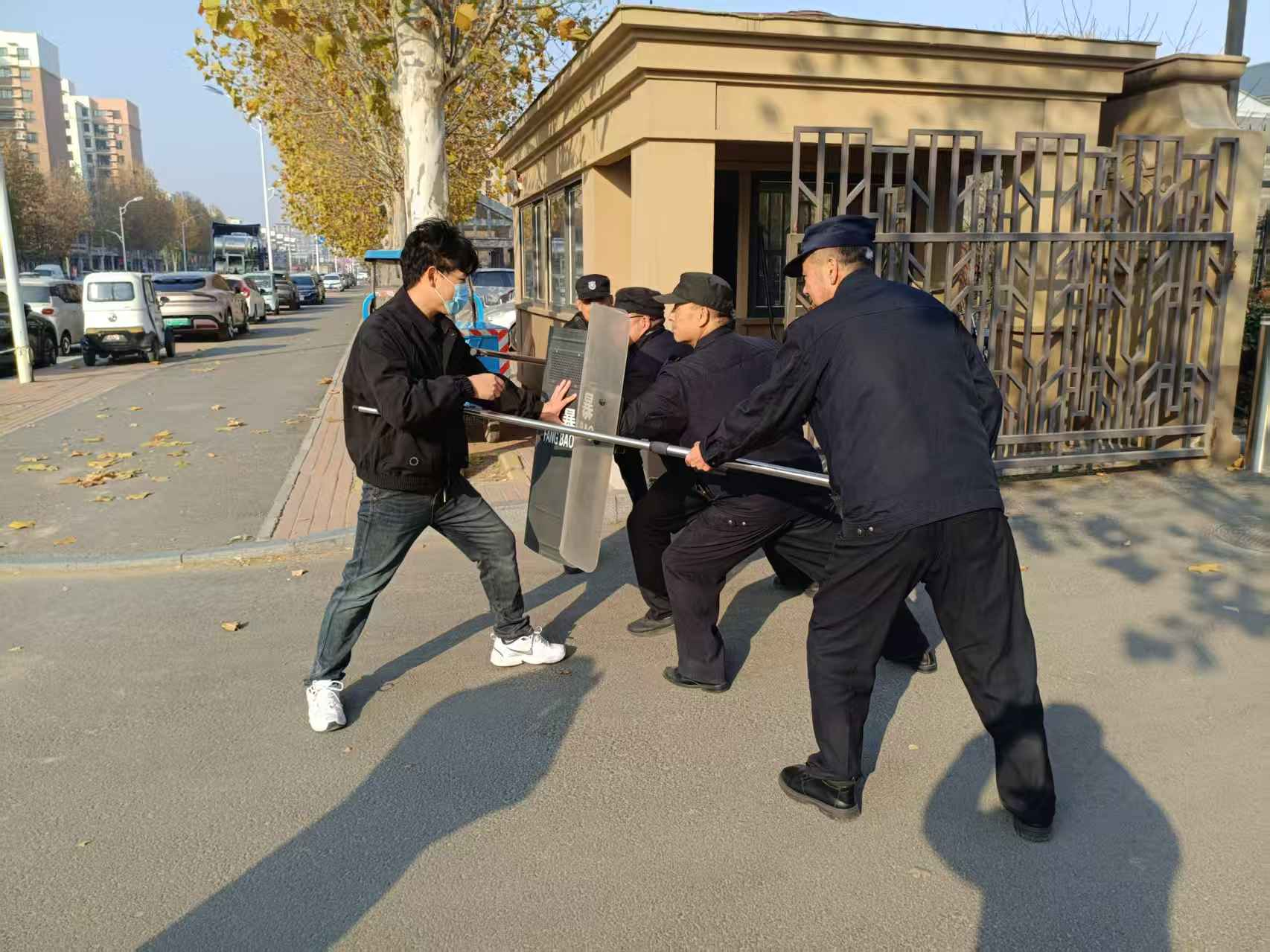 为进一步提升校园安保人员的应急处置能力,保障师生人身安全和校园稳定,12月5日下午后勤保卫处工作人员在西门对物业安保人员组织开展了一场贴近实战的反恐防暴演练。