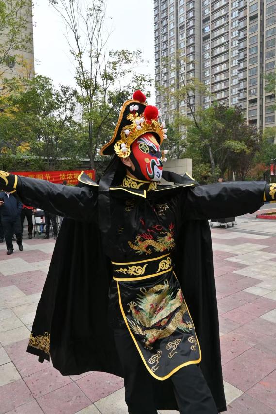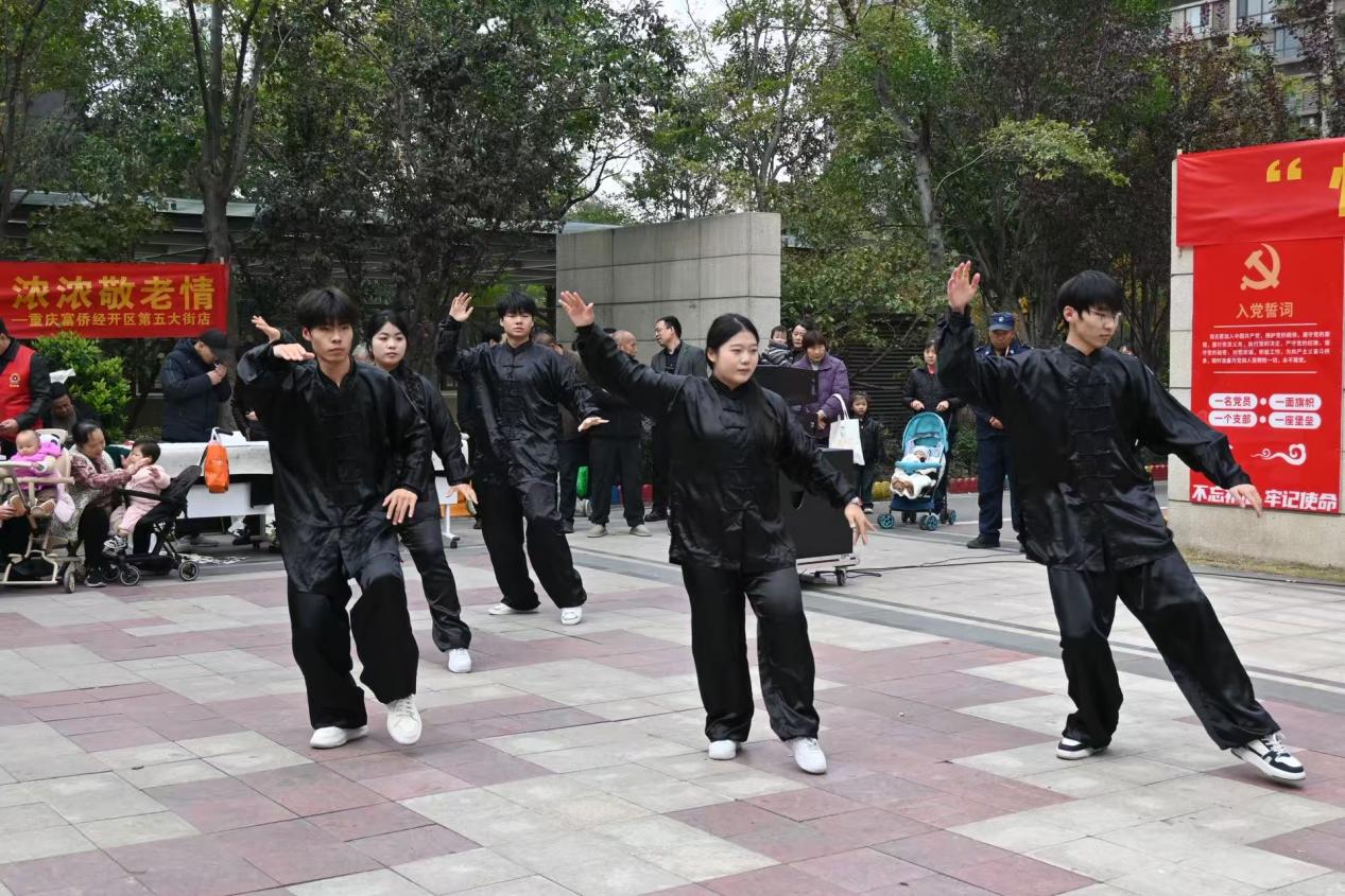 社区内同样热闹非凡,学校武术队的武术表演刚劲洒脱,一招一式舒展有力、刚健豪迈。