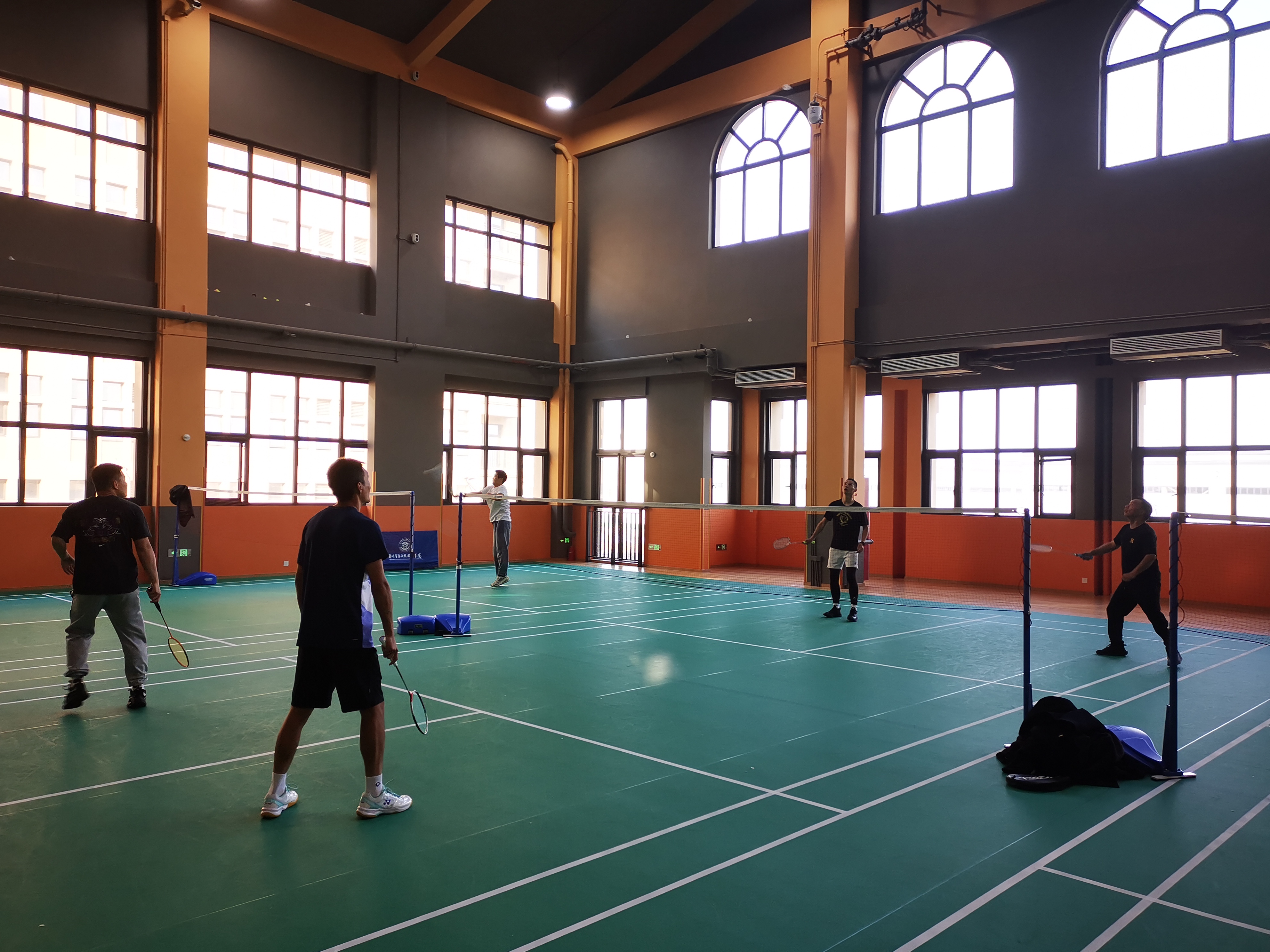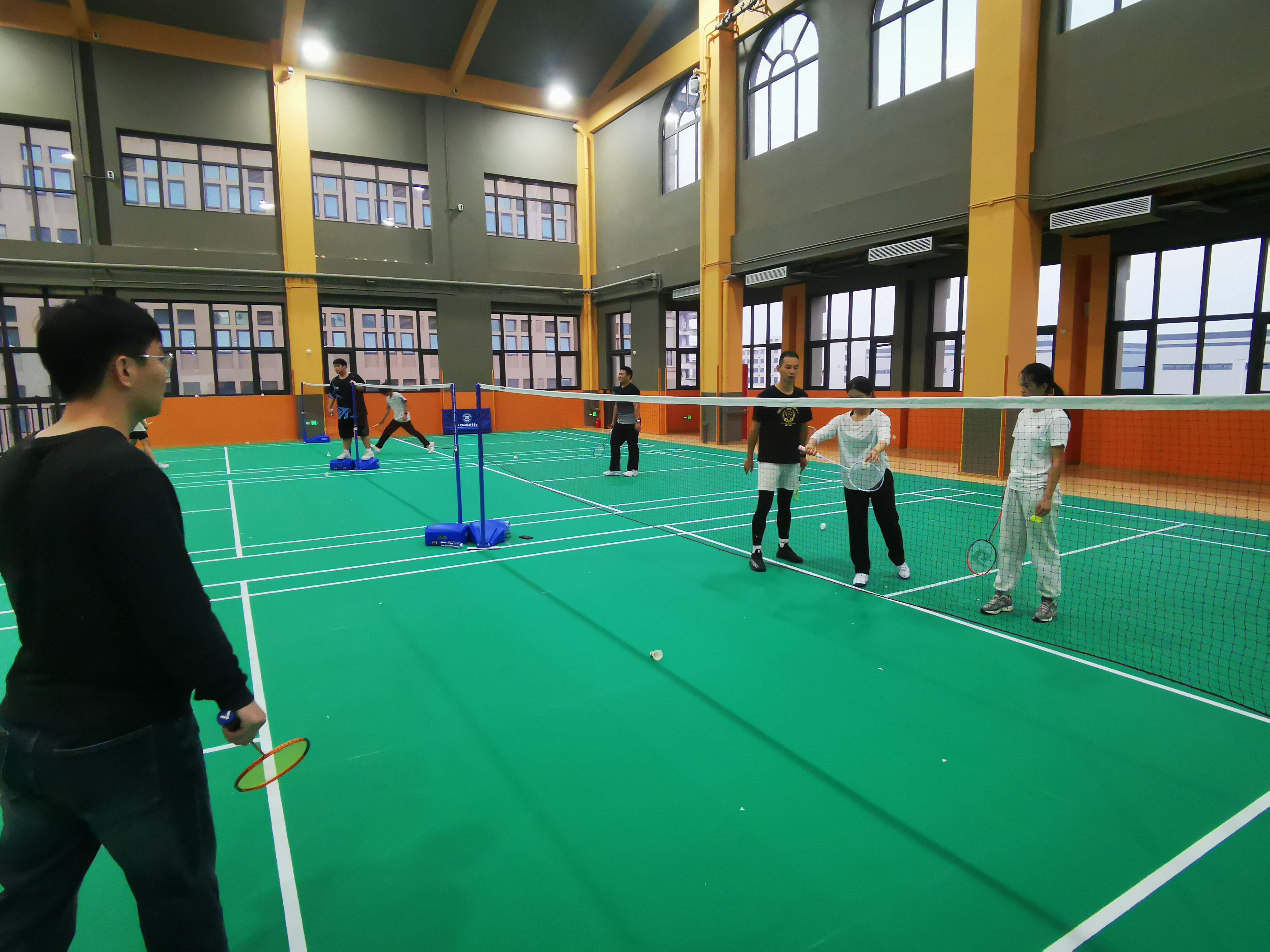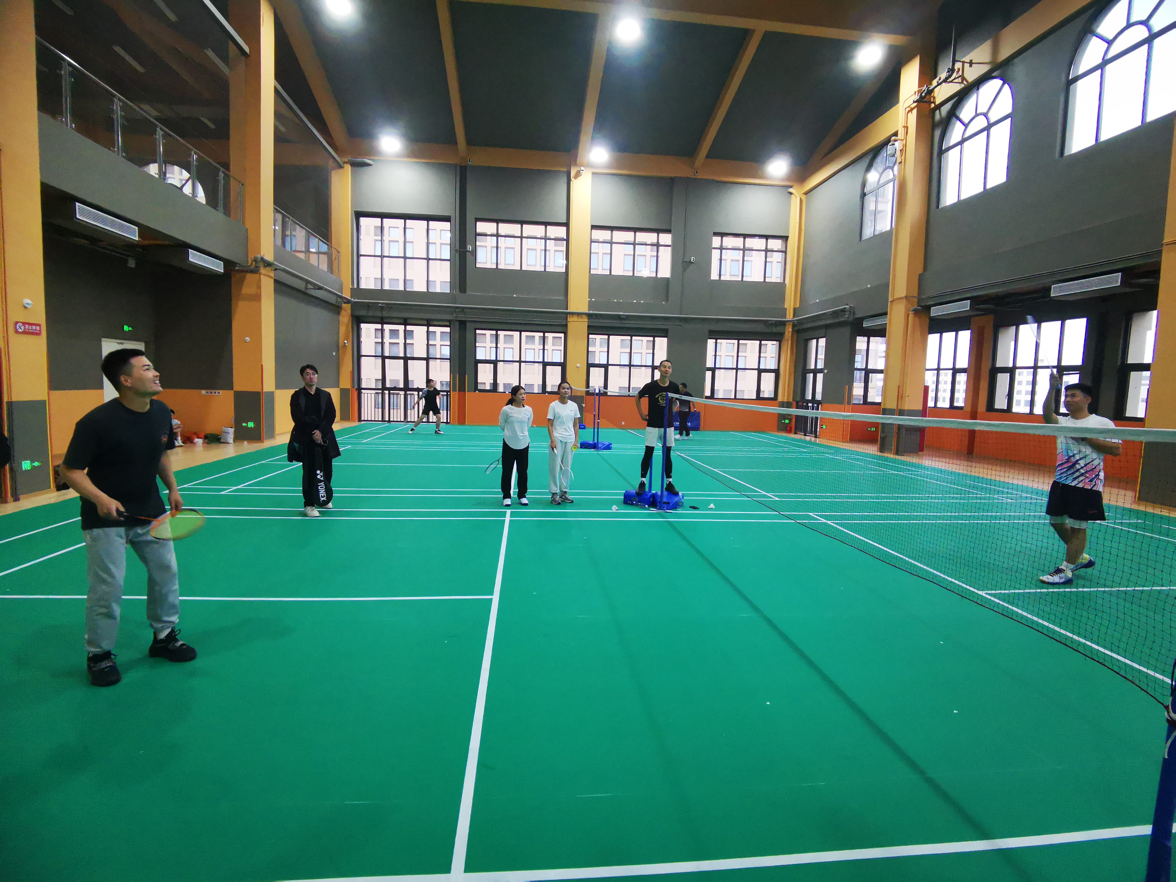 最后让老师之间进行羽毛球对练,学习和掌握羽毛球动作要领和技术。