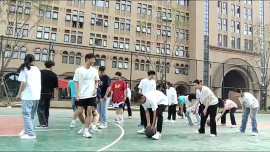 趣味传球中,每组5名队员,依次从胯下向后传球,多轮之后由队首同学进行投篮,命中者为胜。此游戏教会大家合理分配角色,有效选取游戏策略,形成1加1大于2的团队共赢效果。