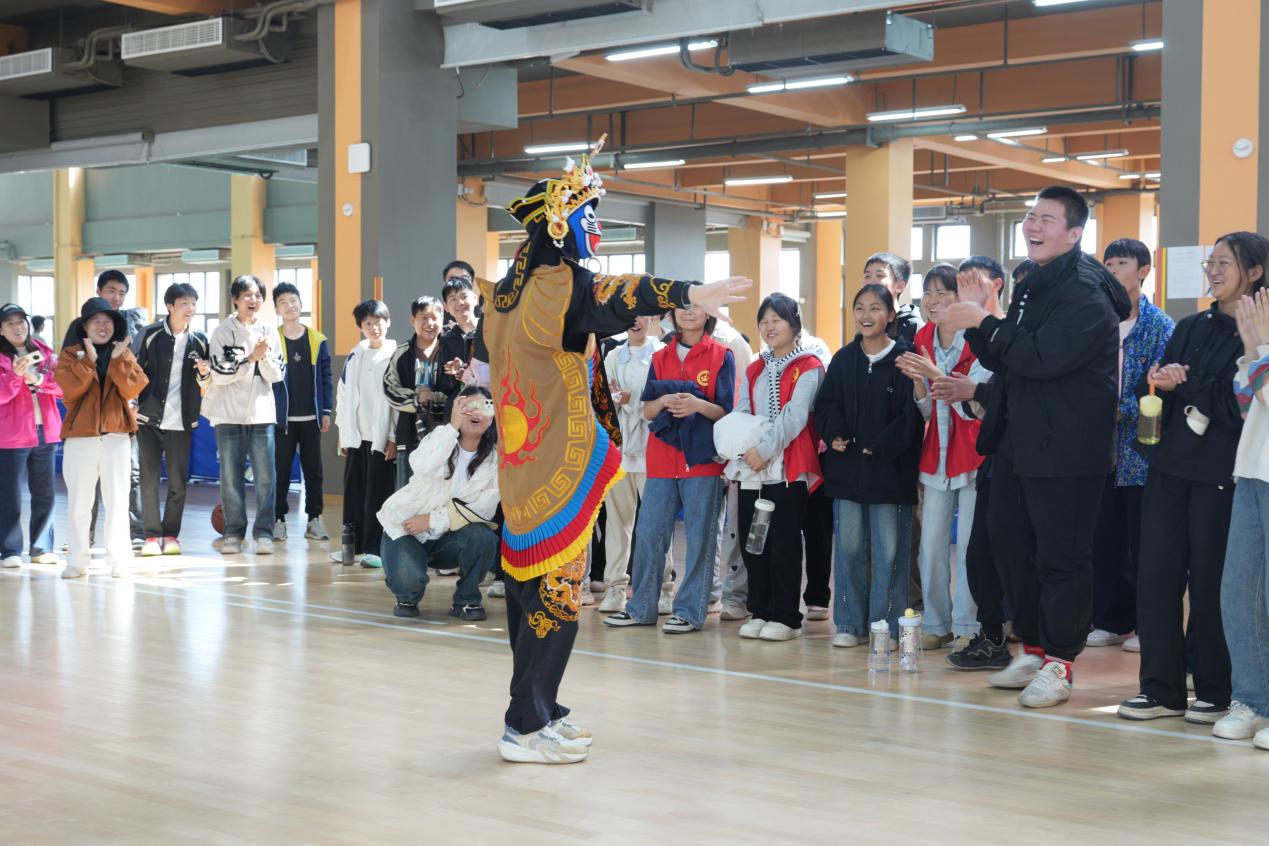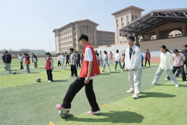 在学校室内体育场馆,孟庄镇中小学师生观摩了篮球、乒乓球、羽毛球课程,特别是现场观看了该校学生的中华优秀传统文化 “变脸”表演,精彩的表演,赢得同学们阵阵掌声和由衷的喝彩;最后,中小学师生代表来到学校田径运动场,开展足球互动游戏,大家在运动中感受足球带来的乐趣。丰富的课程与多样的体验活动让同学们收获颇丰、印象深刻。