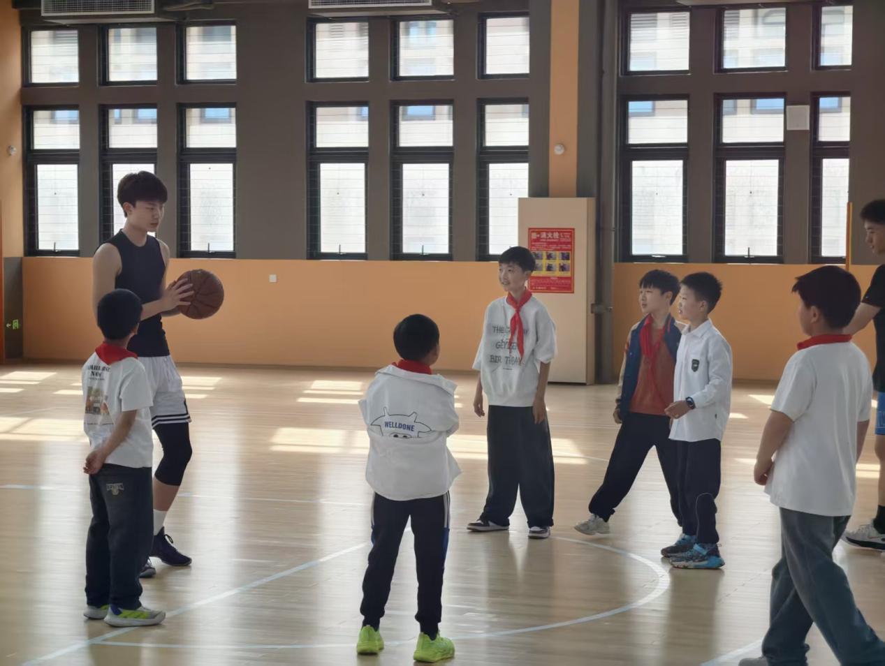 一走进学院,宽敞明亮的篮球场就吸引了我,平整的场地、崭新的球架,仿佛能看到大哥哥大姐姐们奔跑跳跃、挥洒汗水的身影,充满了青春活力。旁边的健身房里,摆放着各式各样的健身器材,每一件都干净又专业,这里是大家强身健体的小天地。