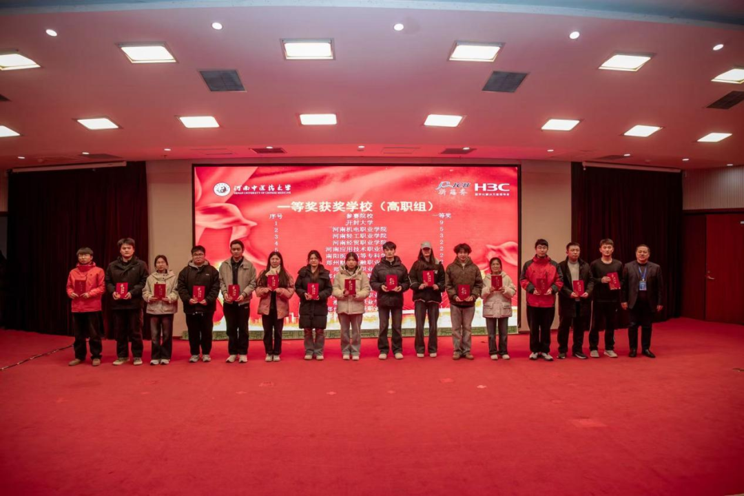 发布日期:2025-12-27 访问次数:2025年12月14日,2025年“新华三杯”全国大学生数字技术大赛于河南中医药大学成功举办。我校计算机网络技术和信息安全技术应用专业共选派18名学生参赛,经过激烈角逐,最终荣获一等奖1项、二等奖2项、三等奖7项,成绩斐然。其中,一等奖获得者常江波同学还荣获大赛特别奖励——移动硬盘一个。