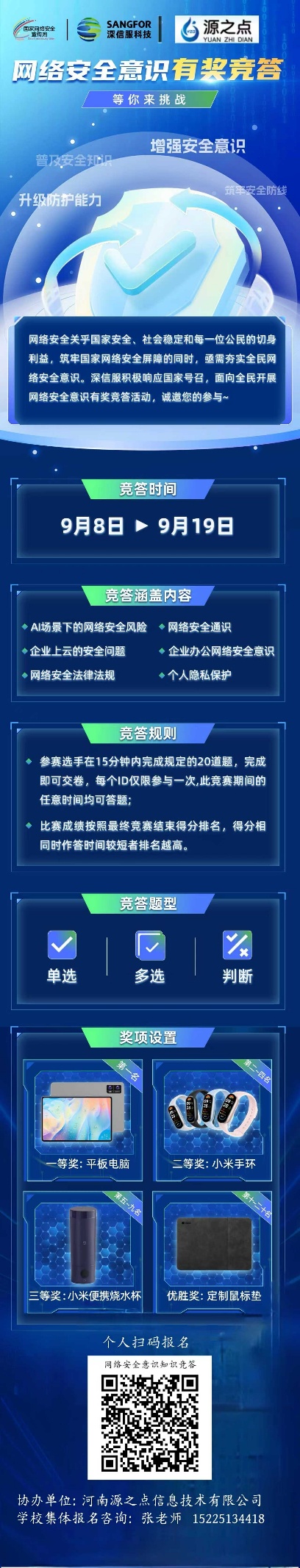 网络安全不仅是国家安全的重要一环,更和我们的个人信息、日常学习生活息息相关。本次活动由深信服科技有限公司与河南源之点信息技术有限公司联合举办,专为咱们专业学生量身打造,有四大核心目标等你来实现: