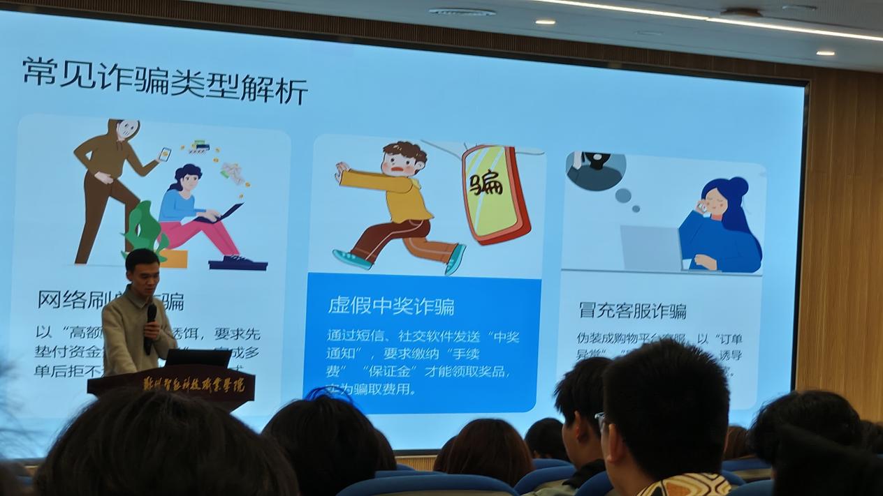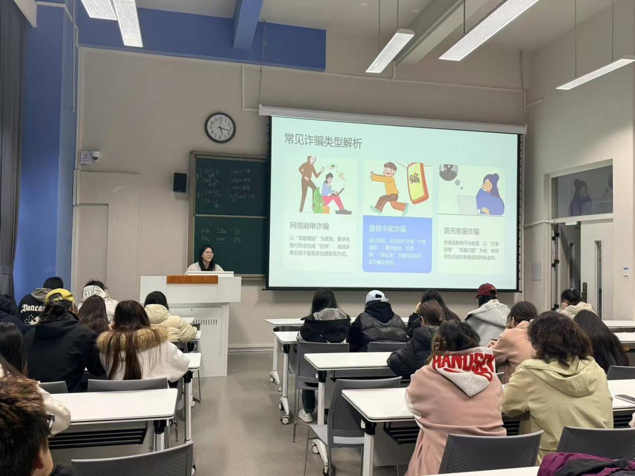 班会伊始,辅导员通过播放反诈宣传短片、展示近期全国及省内高校发生的真实诈骗案例,直观呈现了“虚假刷单兼职”、“游戏账号交易诈骗”、“校园贷变种套路”等常见诈骗手段的作案流程等,让在场学生从心理切入深刻感受到诈骗风险就在身边。筑牢学生的思想与行为防线。辅导员不仅积极引导同学们下载、注册“国家反诈中心”APP,学习更多反诈知识,为自己的财产安全加上一道“防火墙”。更深入阐述了四大防诈要点:一是树立警觉意识,对索要钱财的信息坚持“不听、不信、不汇款”;二是保持理性思考,面对陌生人索财要“听言、观色、辨行”;三是戒除贪利心理,警惕各类“中奖”、“返现”陷阱;四是严守个人隐私,不泄露重要信息、验证码,不共享屏幕。