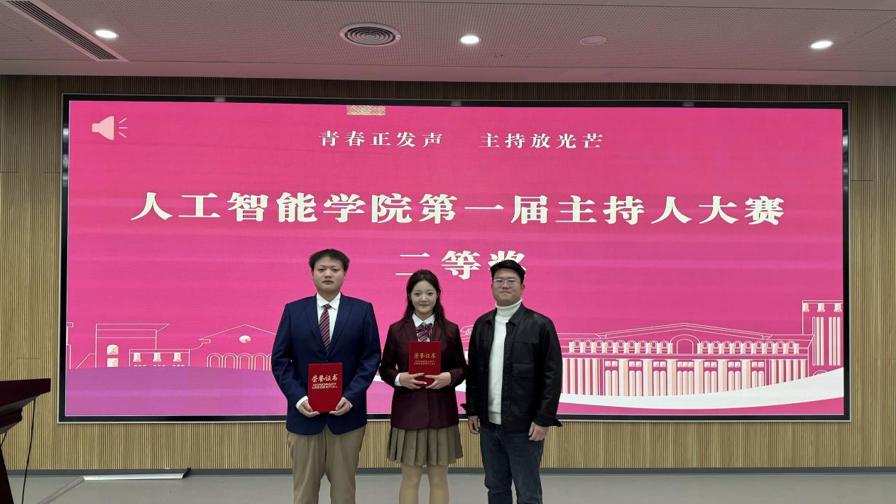 发布日期:2025-11-27 访问次数:为丰富校园文化生活,提升学生的语言表达与临场应变能力,展现学院学子的卓越风采,11月20日,人工智能学院在多闻厅举办人工智能学院第一届主持人大赛决赛。人工智能学院学管副院长白龙松、校团委张清淼老师、人工智能学院团总支书记朱龙博以及人工智能学院辅导员代表,共同参与此次活动,活动由白家昌同学主持。