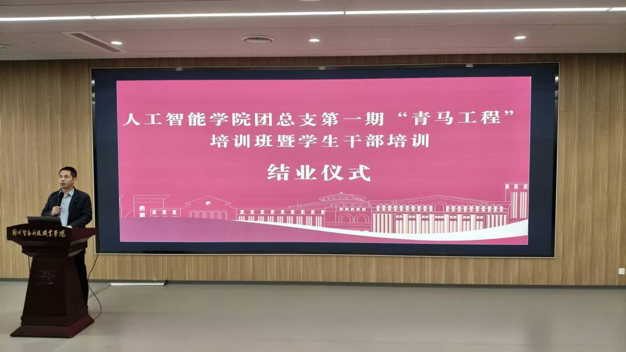 发布日期:2025-11-27 访问次数:为加强青年马克思主义者培养,提升学生干部的综合素养与工作能力,近日,人工智能学院第一期“青马工程”培训班暨学生干部培训圆满完成全部既定课程与实践环节,顺利结业。学生工作处处长、校团委书记秦鹏,学院副院长王国敬,党支部副书记、学管副院长白龙松,全体辅导员老师及培训班学员共同参与相关仪式,多位老师倾情授课,为学员们带来了一场全方位、多层次的能力提升盛宴。