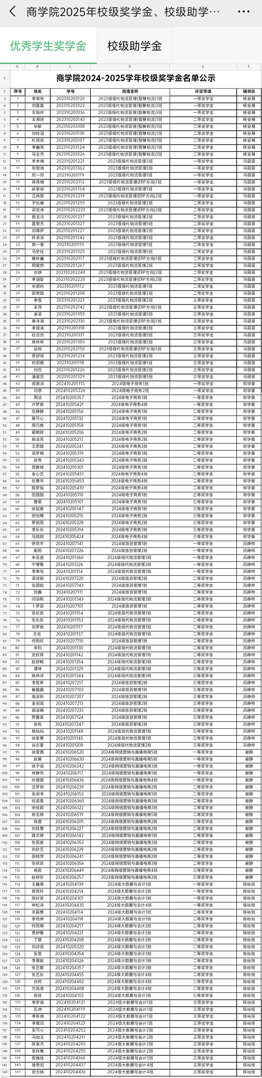 商学院2024-2025学年国家奖学金、国家励志奖学金及2025-2026学年国家助学金公示