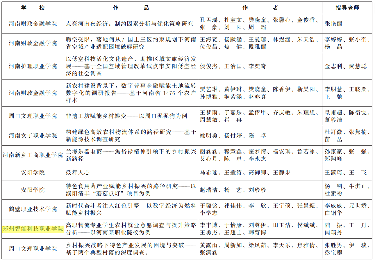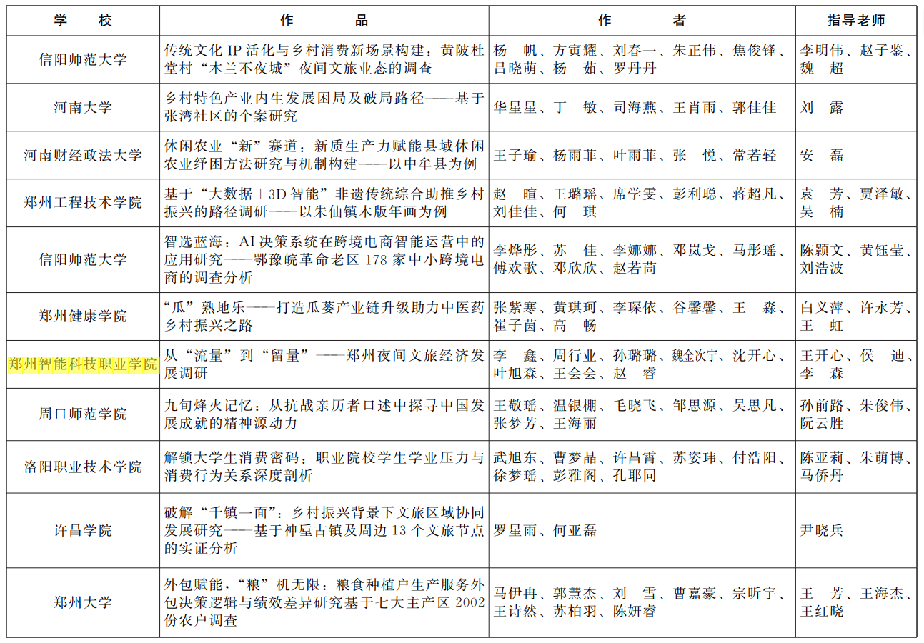 近日,由共青团河南省委、河南省教育厅、河南省社会科学院、河南省科学技术协会、河南省学生联合会共同举办的第十七届“挑战杯”河南省大学生课外学术科技作品竞赛获奖名单公示完成。我校学子凭借扎实的专业功底和守正创新的实践探索,共有10项作品脱颖而出,其中一等奖1项,二等奖4项,三等奖5项。