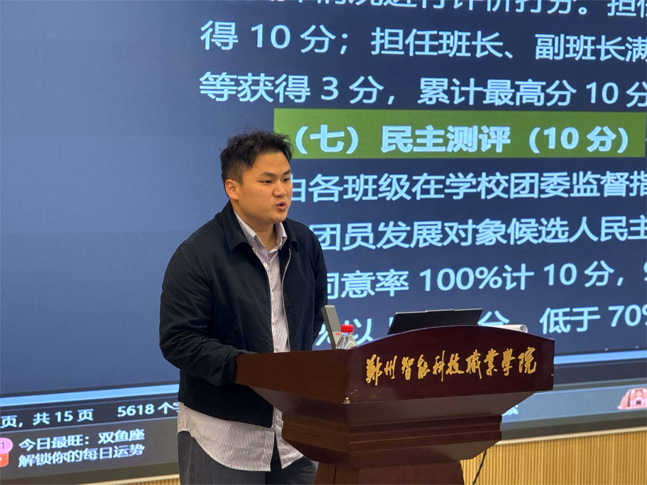马克思主义学院任恩帝以《在中国式现代化建设河南实践中贡献智科青春力量》为题进行专题授课。课程紧密结合新时代发展要求,引导学员深刻理解中国式现代化的内涵,激励大家将个人成长融入河南发展实践,在现代化建设征程中展现青春担当。