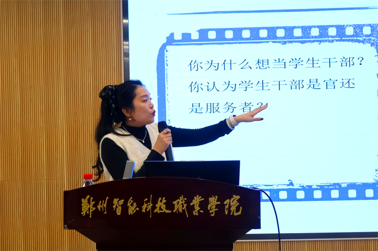 人工智能学院张梁飞围绕《学生干部的作风建设》进行授课,强调学生干部要严于律己、率先垂范,在工作中注重作风养成,树立清新阳光的学生组织形象。