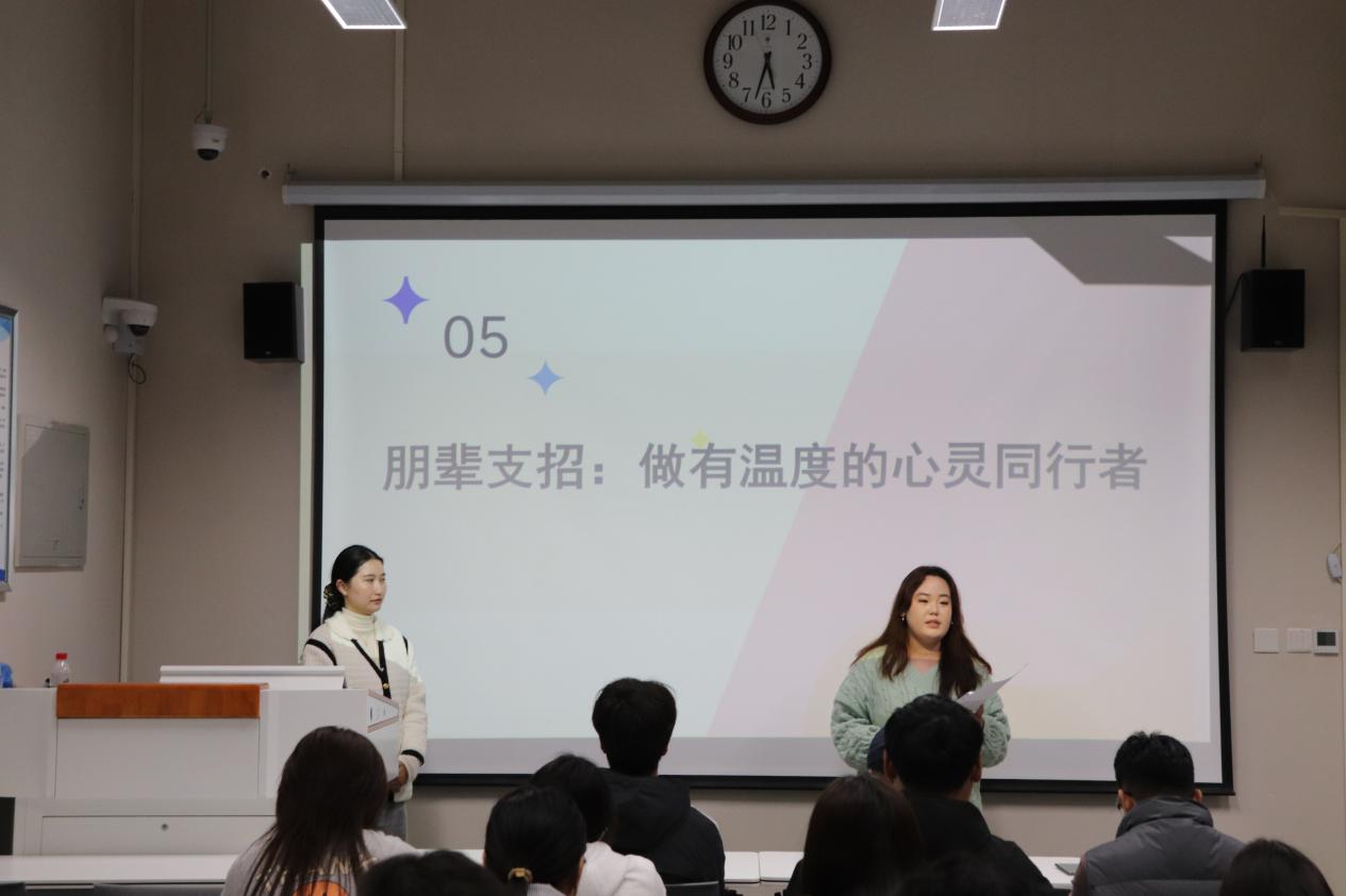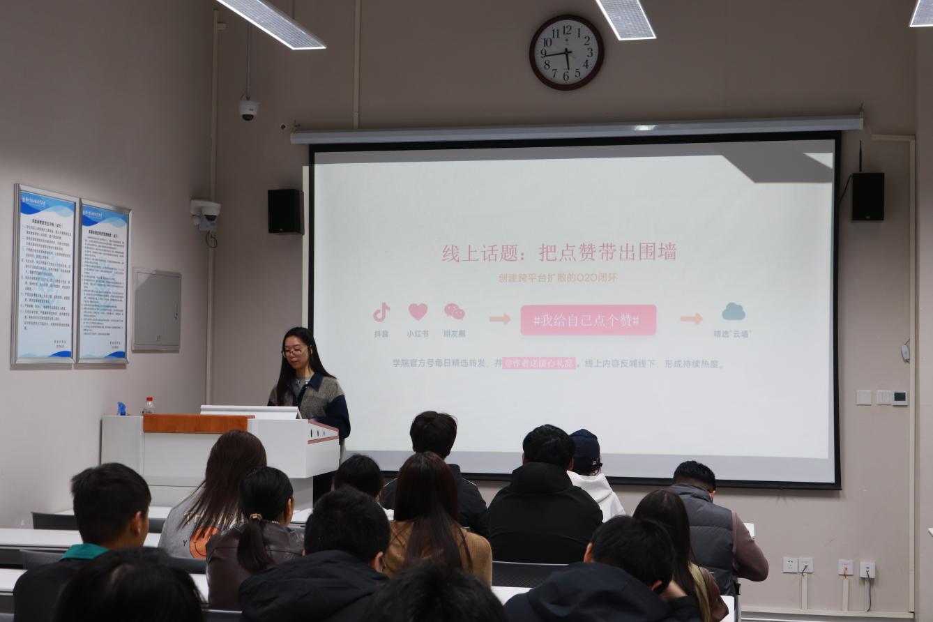会议最后,张唱唱针对学院即将开展的“我为自己点个赞”心理特色活动进行部署,从活动设计理念、流程安排、组织要点及预期目标展开讲解,要求心理委员发挥桥梁纽带作用,动员更多同学参与,确保活动实现“滋养心灵、赋能成长”的效果。