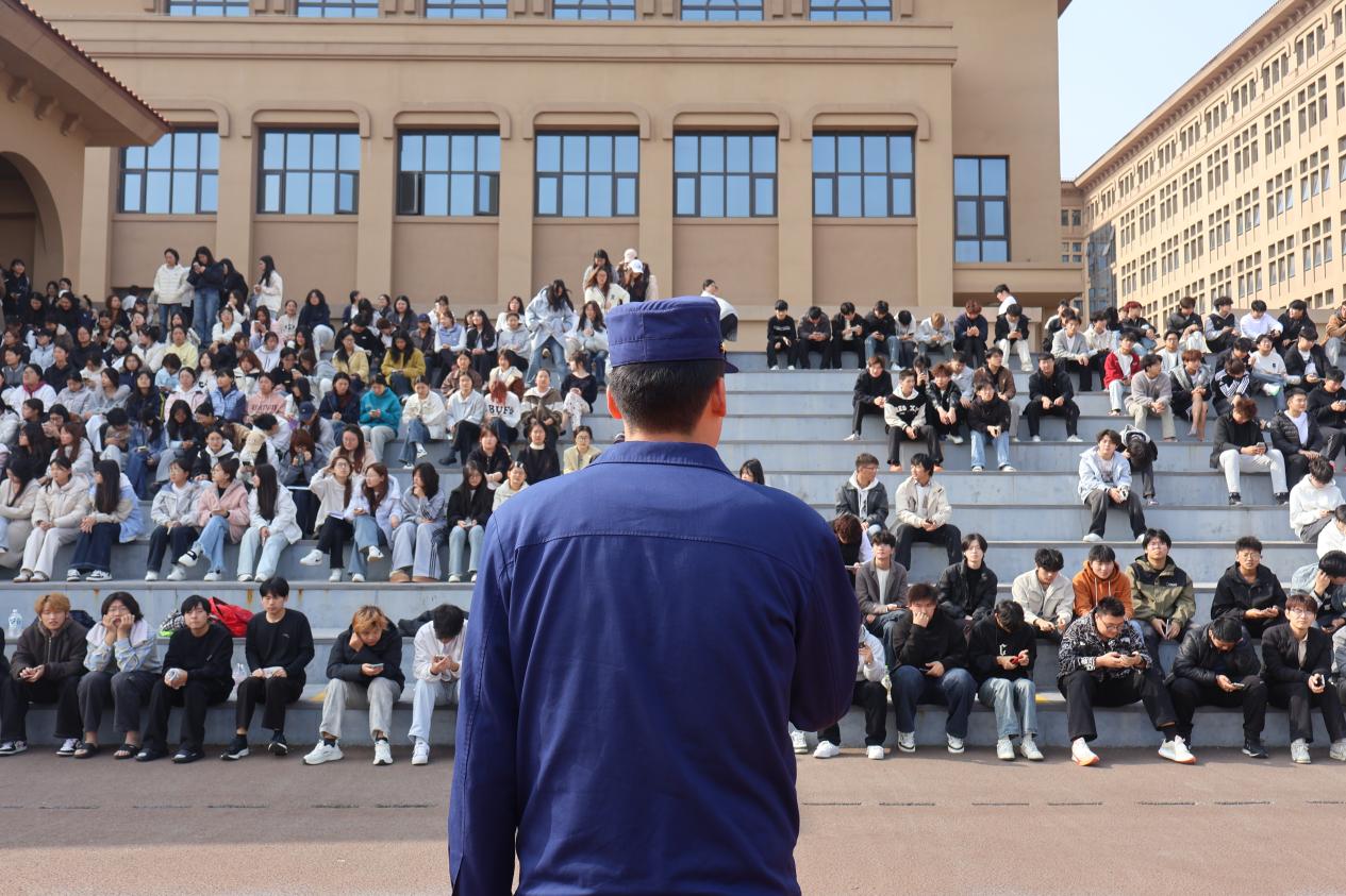 在消防员的专业指引下,全体住宿生安全、高效地撤离至田径场看台指定区域集结,整个疏散过程紧张有序、衔接顺畅。集结完毕后,消防员代表结合宿舍火灾易发性、蔓延快等特点,用生动鲜活的案例和通俗易懂的语言开展安全宣讲。他重点强调了宿舍用电安全、易燃物品存放禁忌等核心要点,详细讲解了火灾逃生的正确方法及初期火情处置技巧,提醒同学们时刻警惕宿舍火灾隐患,牢记消防安全知识。