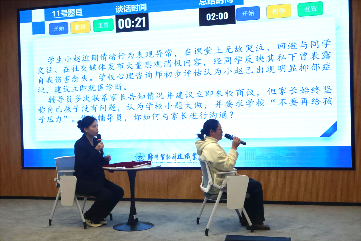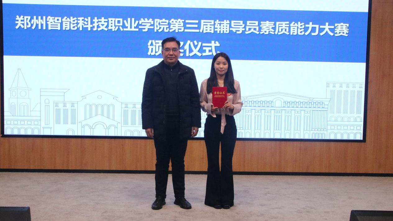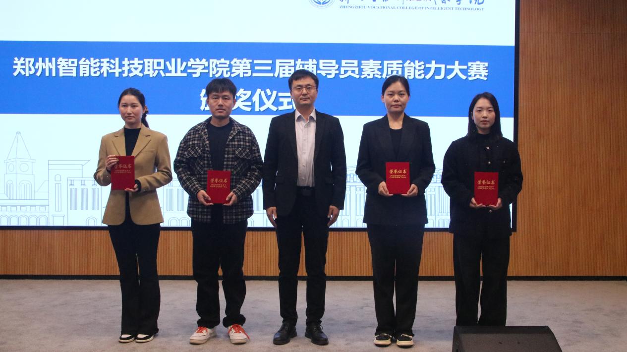 为深入学习贯彻习近平新时代中国特色社会主义思想,深入学习贯彻党的二十大和二十届二中、三中、四中全会精神,推动辅导员队伍专业化、职业化建设,提升思想政治教育工作质量,郑州智能科技职业学院第三届辅导员素质能力大赛于2025年12月15日至19日顺利举办,历经初赛、复赛、决赛多轮激烈角逐,于12月19日在艺术中心多功能厅圆满落下帷幕。