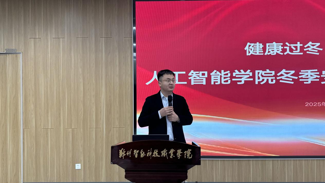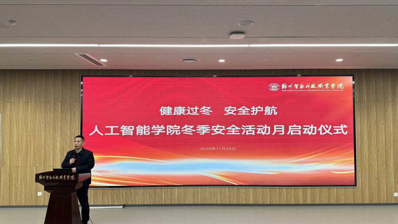 随后,秦鹏致辞。他对人工智能学院冬季安全活动月的顺利启动表示热烈祝贺,并结合学校学生安全管理工作实际,对活动开展提出殷切期望。秦鹏表示,学生安全是学校工作的重中之重,冬季安全涉及交通出行、消防安全、饮食健康、防寒保暖等多个领域。希望人工智能学院以此次活动月为契机,创新活动形式、丰富活动内容,切实提升学生的安全防范能力和自我保护意识,同时充分发挥示范引领作用,带动全校形成“人人讲安全、事事为安全、时时想安全、处处要安全”的浓厚氛围。