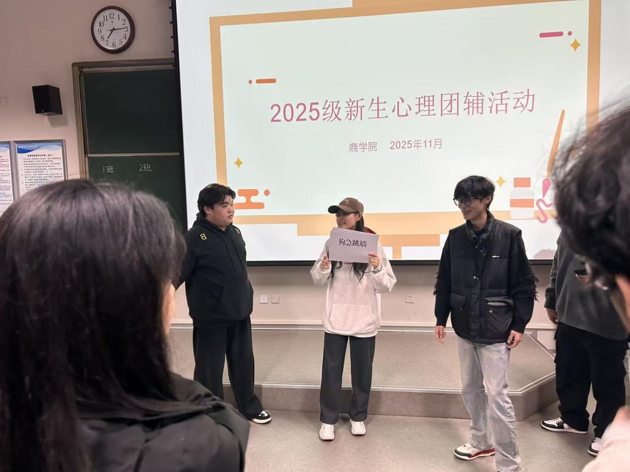 为帮助新生进一步融入大学生活,提升心理健康素养,增强团队协作与人际交往能力,商学院于11月3日-7日,组织25级各班新生开展了系列心理团体辅导活动。各专业辅导员精心策划、全程引导,新生们积极参与、热情互动,活动取得了良好效果。