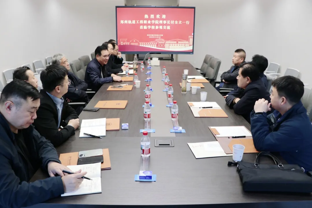 11月5日,郑州轨道工程职业学院理事长付全立一行来我校参观交流。我校副董事长刘光明,副校长张保来、王发清、韩万兵及相关部门负责人陪同参观。