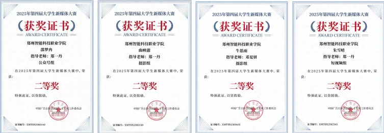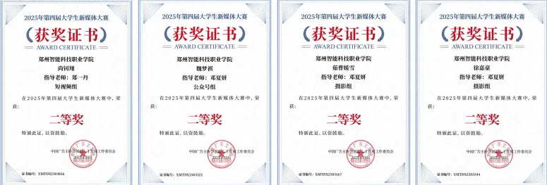 近日,中国广告主协会创新人才发展工作委员会面向全国高等院校举办 2025 年第四届大学生新媒体大赛圆满落幕。我校融媒体技术与运营专业的学生在摄影、短视频、微信公众号运营三个组别中全面开花,共斩获22个奖项,其中包括二等奖13项、三等奖8项、优秀奖1项,展现了同学们在新媒体内容策划、技术实现与传播运营方面的综合能力。