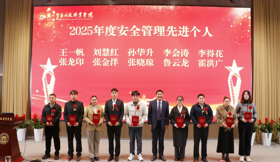 谷启涛宣读《郑州智能科技职业学院关于表彰2025年度安全管理先进单位和先进个人的决定》。