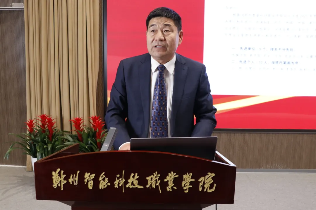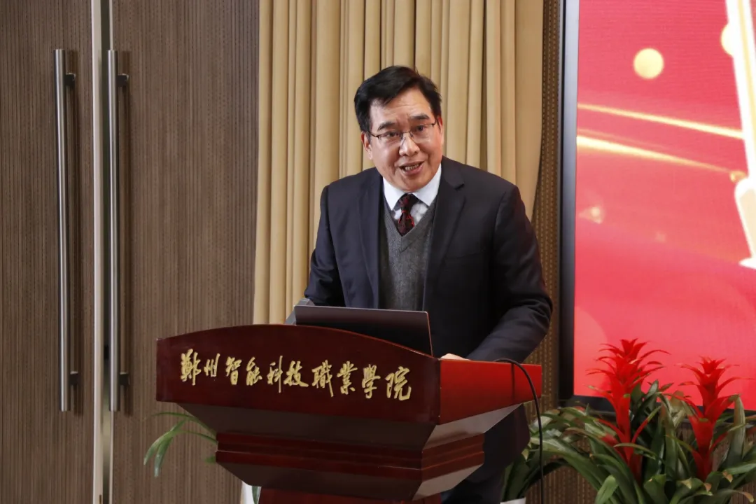 王广国宣读《郑州智能科技职业学院关于表彰2025年度先进单位和先进个人的决定》。