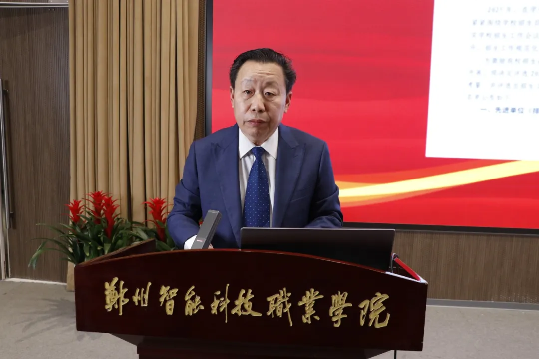 王发清宣读《郑州智能科技职业学院关于表彰2025年度招生工作先进单位和先进个人的决定》。