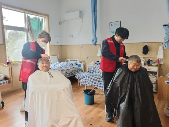 医养中心活动现场暖意融融,志愿者们始终围绕老人们的实际需求,用心开展各项服务。他们为老人修剪指甲、整理房间、联合专业理发师开展爱心义剪,还为老人们表演舞蹈、演唱经典歌曲。社区内同样热闹非凡,武术表演刚劲洒脱,一招一式舒展有力、刚健豪迈;变脸表演妙趣横生,色彩斑斓的脸谱手起手落间快速切换,引得现场阵阵惊呼;花式瑜伽柔美灵动,学子们以优雅姿态诠释力量与柔韧,展现青春活力。整场活动现场其乐融融,志愿者们用语文明、态度亲和,展现出良好的精神风貌与服务素养。