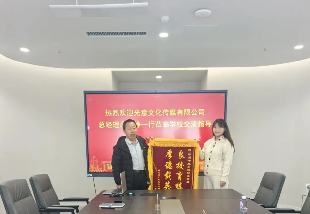 会上,朵春静总经理代表公司向我校赠送了感谢锦旗,对我校去年选派至该公司的实习生在实习期间展现出的优秀专业素养、扎实实践能力和积极工作态度给予了高度评价,并对他们取得的良好实习成绩表示衷心感谢。随后,她详细介绍了绍兴市光意文化传媒有限公司的主要业务、核心优势以及未来的发展前景,并表达了希望与我校进一步拓展合作领域、深化合作内容的强烈意愿。