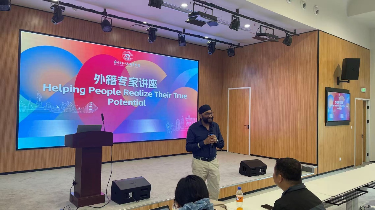 上午,河南财经政法大学外籍教授Garry在艺术中心多功能报告厅带来专题讲座,以“Helping to Realize True Potential”为题,结合“一带一路”案例与人工智能专业实际发展现状,深入剖析AI如何助力个体潜能释放与跨文化合作,现场互动热烈,学生反响强烈。
