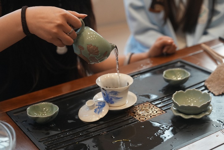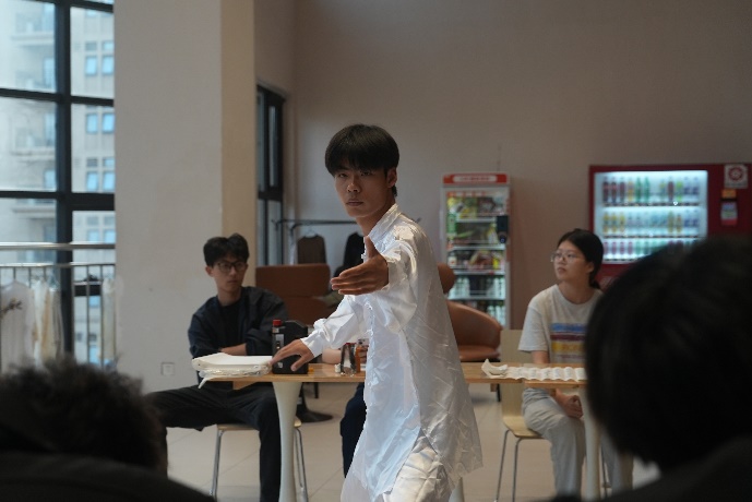 晚上,宿舍四楼中庭活动室门前非遗体验火热展开,书法、茶艺、武术、太极及漆扇艺术精彩互动,点燃“非遗体验日”激情;