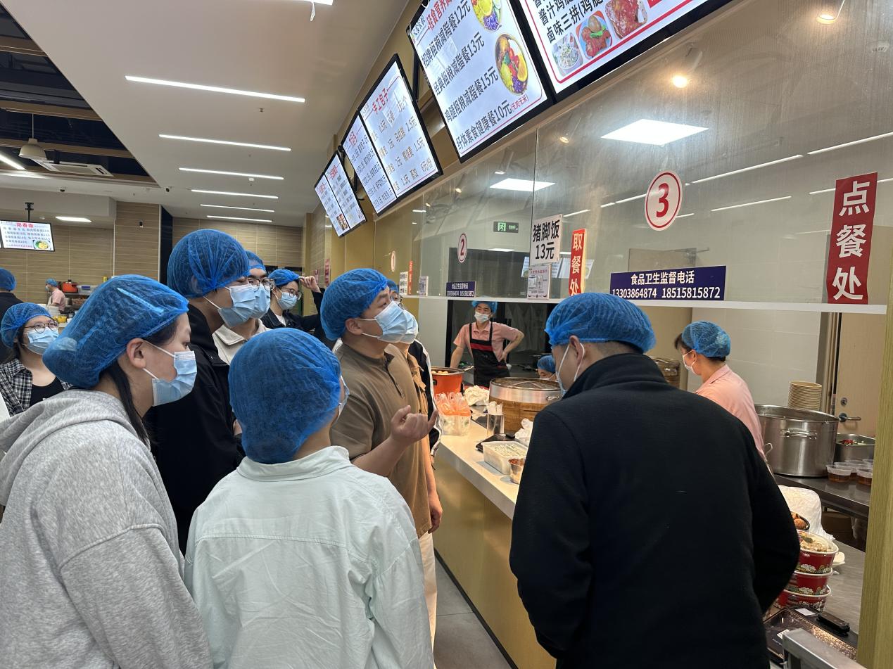 活动伊始,餐厅负责人对师生代表的到来表示欢迎,并介绍了活动目的、食堂食品安全管理体系及日常运营规范。在工作人员引导下,师生代表规范佩戴口罩、工作帽、鞋套,经消毒通道有序进入后厨区域。在信息公示栏前,大家认真查看食材供应商资质、检测报告、消毒记录、员工健康证等资料,全面了解食堂 “源头 — 加工 — 餐桌” 闭环管理体系。随后,代表们先后参观食材验收、储存、加工、烹饪、消毒、留样等全流程区域,详细了解食堂管理制度、食材溯源体系、卫生消毒标准、营养配餐方案,对餐厅呈现的闭环管理体系有了更为直观和全面的认识。